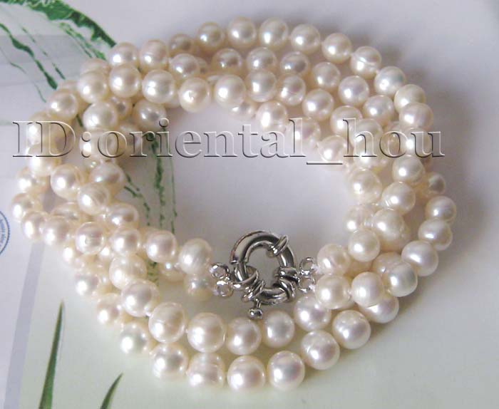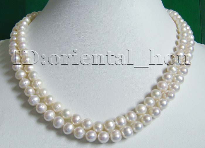 17"-17.5" 2-strds 7-8mm white Freshwater pearl necklace
