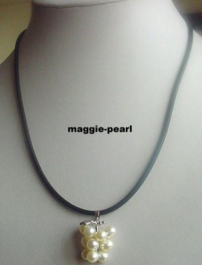 Decent necklace 18" is made of white FW pearl measuring 6x7mm.The pendant is beautiful,looks like  grapes.Very beautiful! Length:18" Material:FW pearl Unit:one    |    |