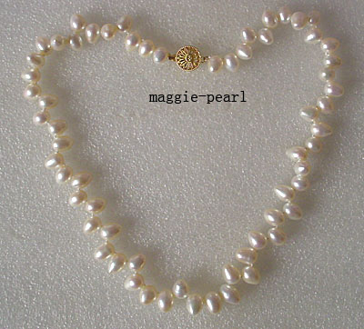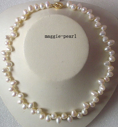 This single necklace is made of white top drilled FW pearl approx.8*9mm. The length is about 18" with a round clasp. Length:18" Material:FW pearl Unite:one     |    |