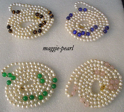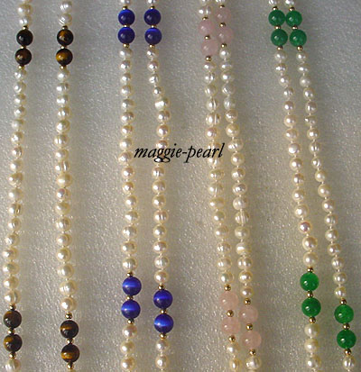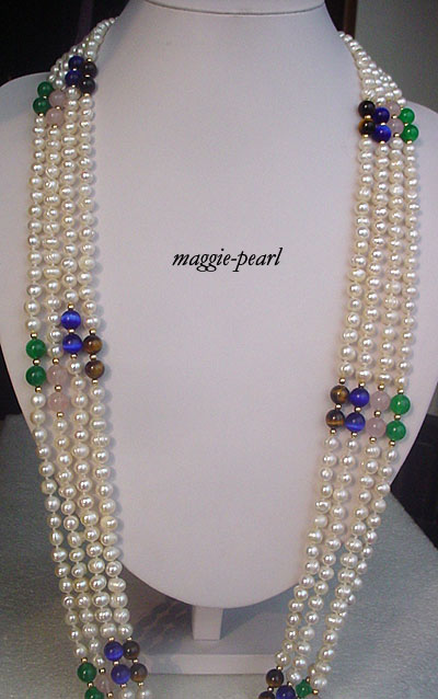 4pc white pearl&tigereye&jade&rosequartz&opal necklace