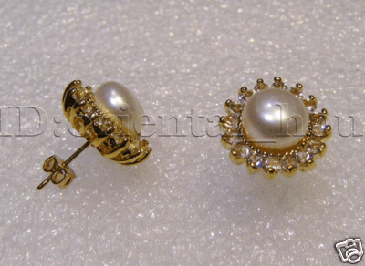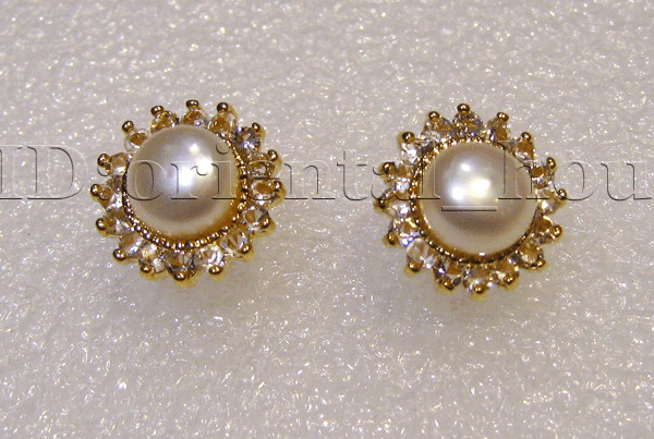 Charming!7-8MM White FW Pearl&Crystal Stud Earrings