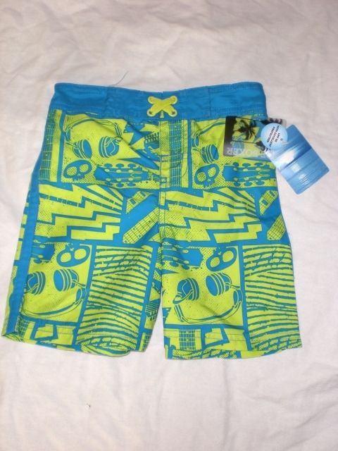 NWT Joe Boxer Boys Swim Suit Trunks Shorts w Pocket Sz 3T Green Guitars!