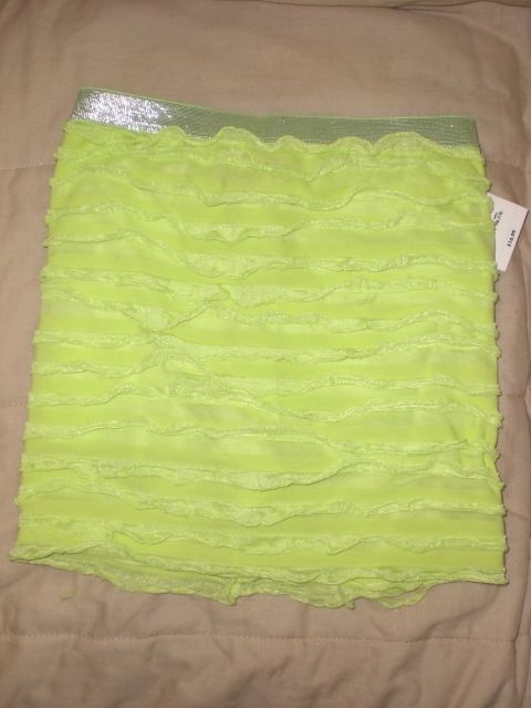 Cute Lime Green Skort w Ruffles and Sparkly Silver Waistband!