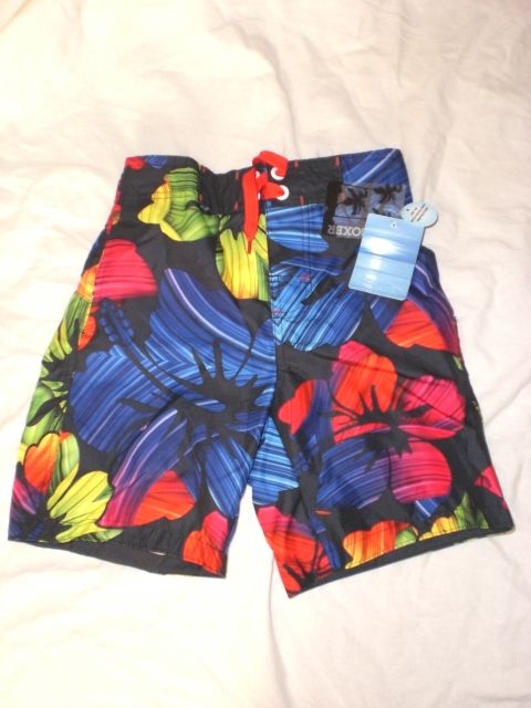 NWT Joe Boxer Boys Swim Suit Trunks Shorts w Pocket Sz XS 4/5 Red Blue Swirls