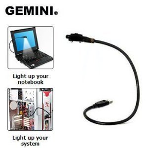 * Shed some light on your laptop/notebook with this dual LED notebook light from Gemini®. * The Gemini dual USB light is the perfect companion for executive's on the go. * Whether you are on a business trip, on an airplane or surfing the internet at night, you will love to have this fantastic light with you. * Just plug this handy, flexible light into your USB port and illuminate your keyboard or nearby area. * You will find the USB notebook light is handy when utilizing your laptop during a presentation, at night or in a dark space so as not to disturb anyone nearby. * No external