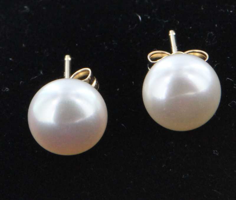 Honora Pearl Stud Earrings Overview: *Offered for sale is a truly superb estate pair of earrings, set with beautiful Honora freshwater pearls. *Beautifully crafted in a 14 karat yellow gold stud mounts.