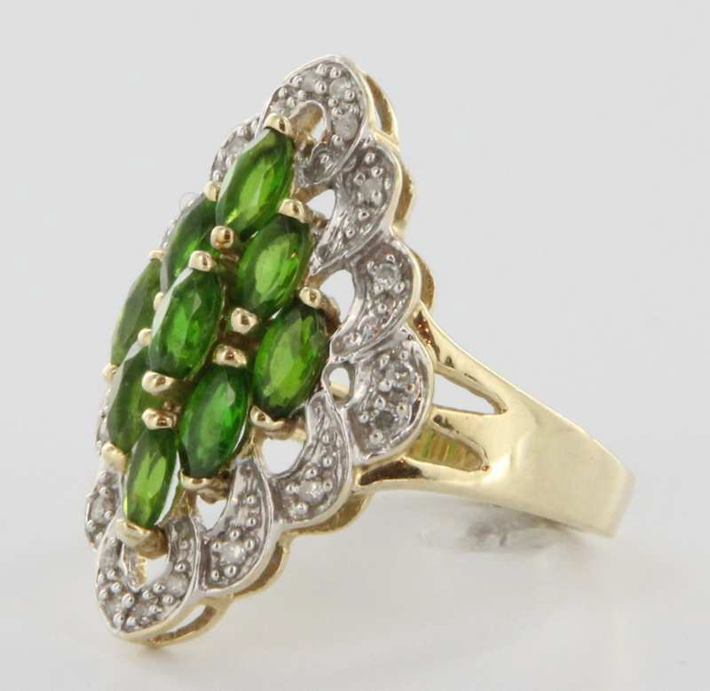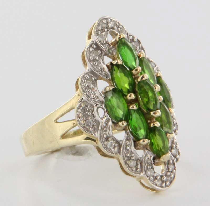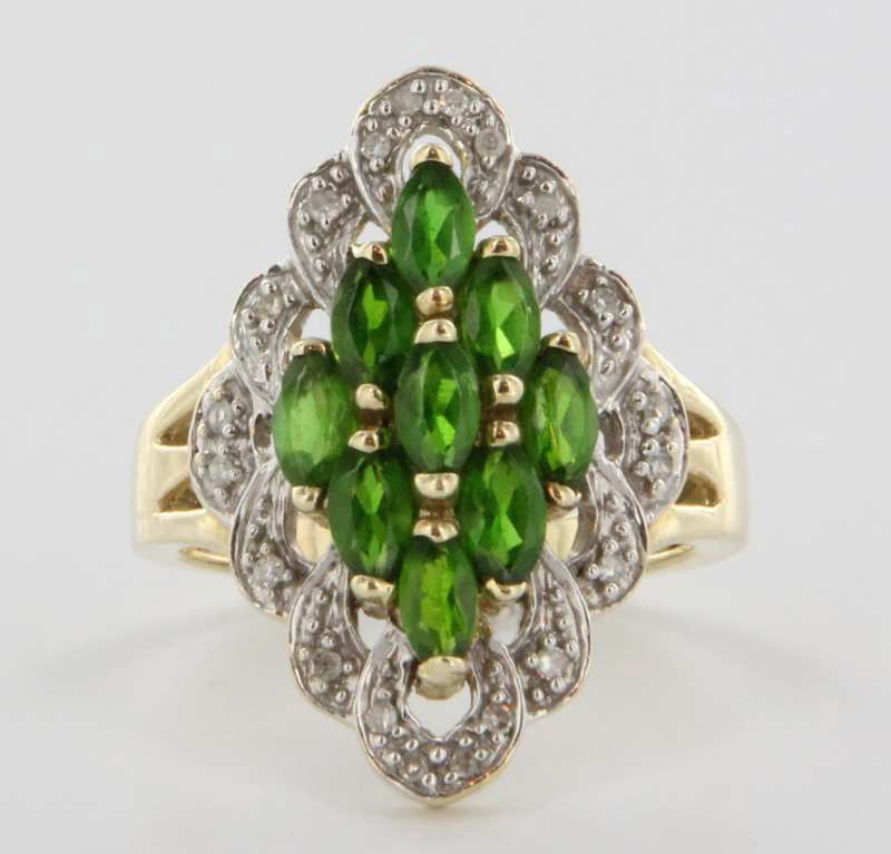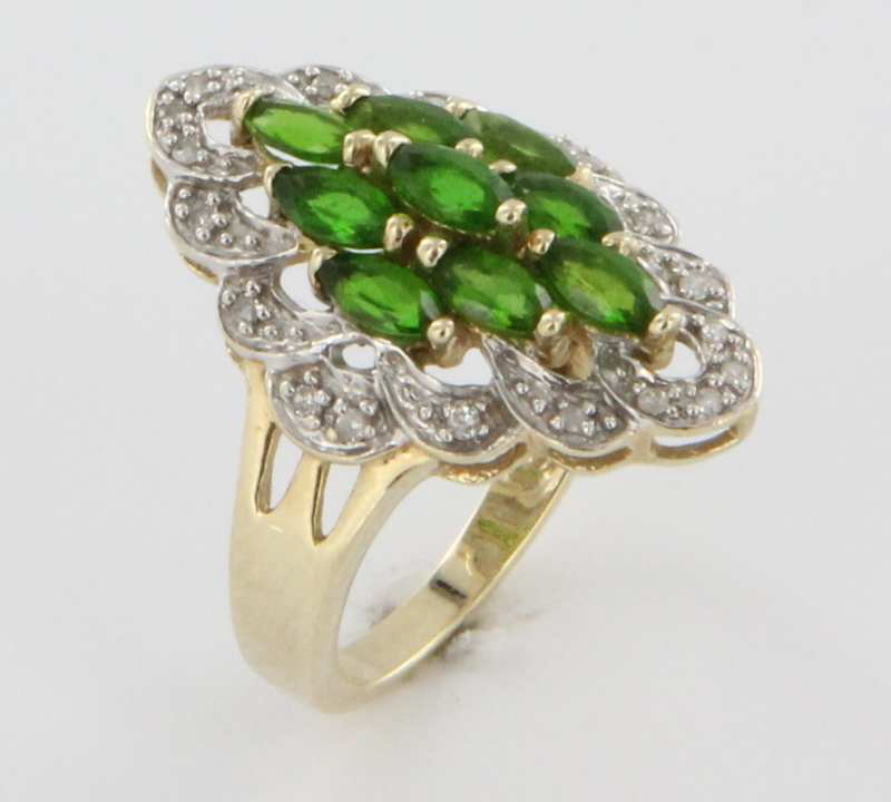 *Set with an array of tsavorite garnet and single cut diamonds in an elegant cocktail mount.