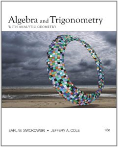 Don't waste your money on the newer edition! Check our feedback as a seller on Ebay for proof: Ebay Feedback. This listing is for (Algebra and Trigonometry with Analytic Geometry) 12th edition (Pictured on the Left) by (Swokowski, Earl W.; Cole, Jeffery A.). This edition has word-for-word the same information as ISBN: 0840068522 the 13th edition (Pictured on the Right), except for a small update and a different picture on the cover. All our books are in decent, usable condition or better and may or may not contain: highlighting, writing, cover and page wear, cds and additional material. If you are unsatisfied in any way with our product you can return it within 30 days for a refund.