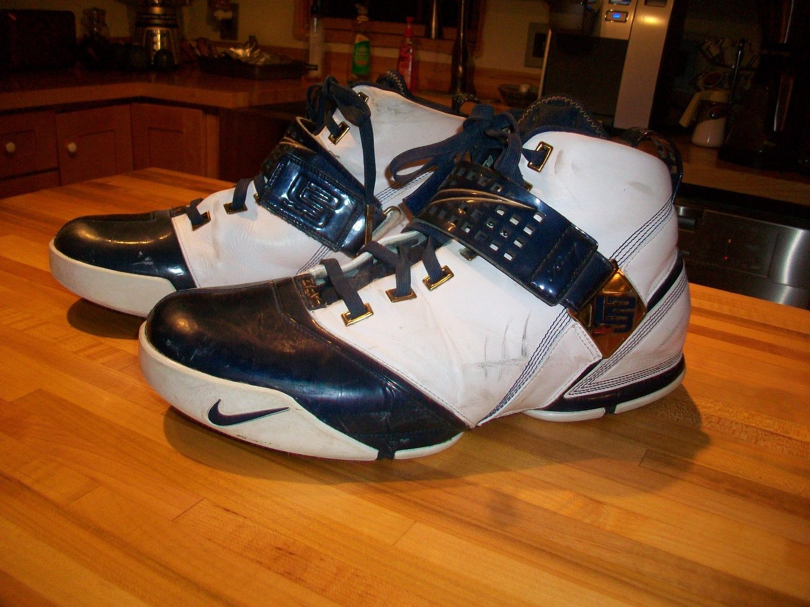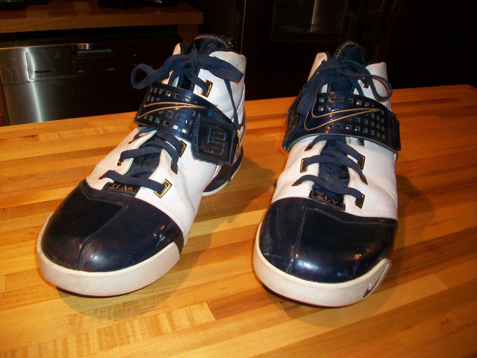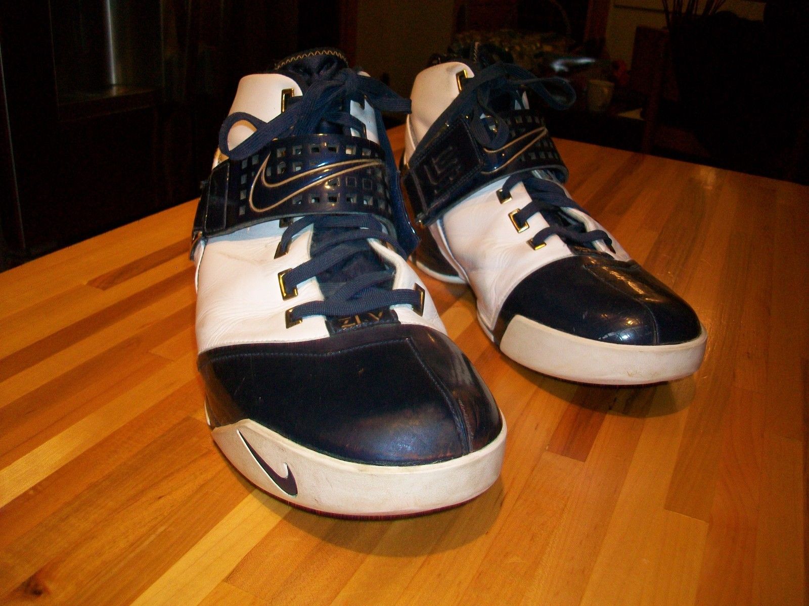 2007 Nike LeBron Zoom 5 V Akron SNEAKERS WHITE & NAVY 317253-141 MEN'S Sz. 14. COOL SNEAKS! CHECK OUT PICS!