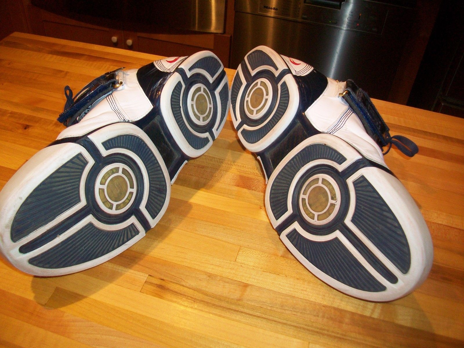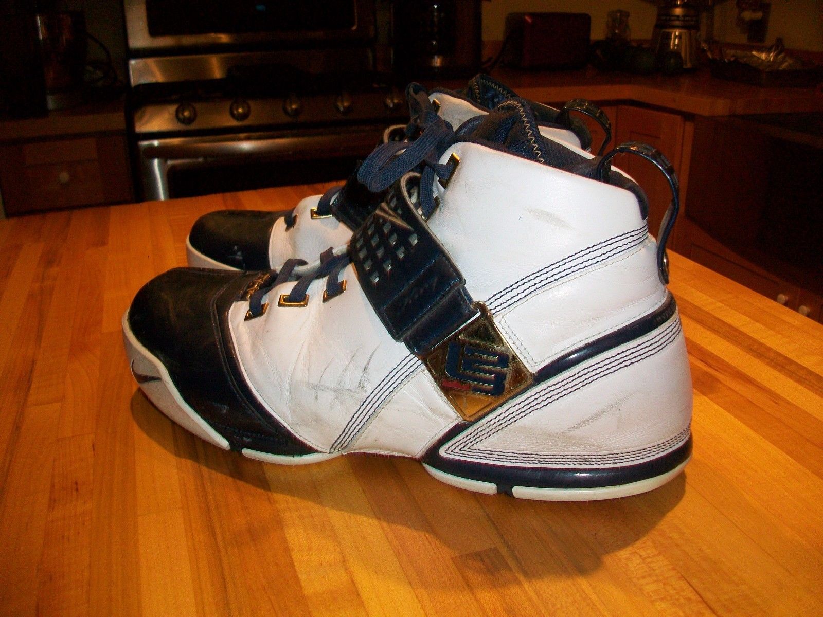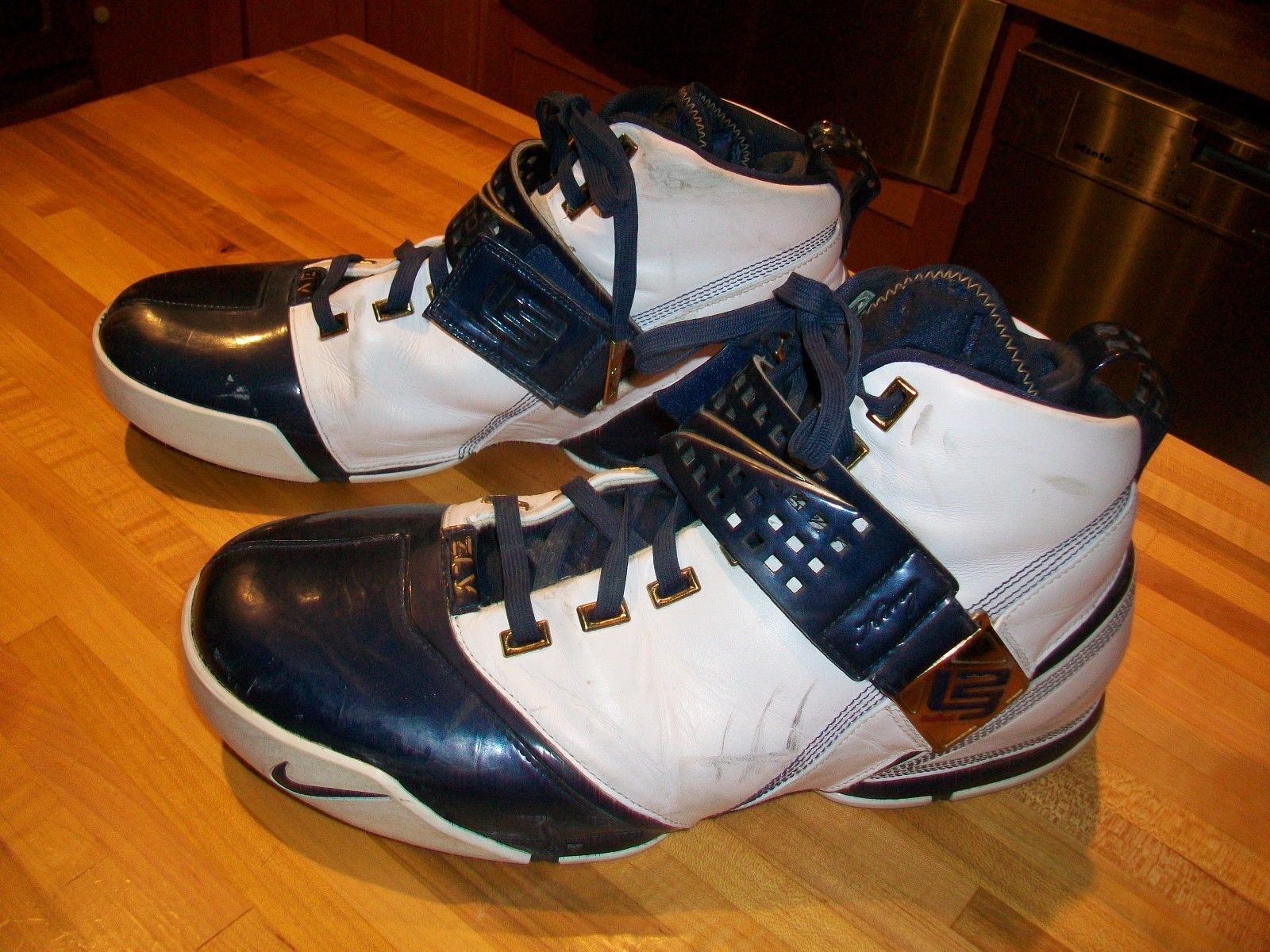 2007 Nike LeBron Zoom 5 V Akron SNEAKERS WHITE & NAVY 317253-141 MEN'S Sz. 14. COOL SNEAKS! CHECK OUT PICS!