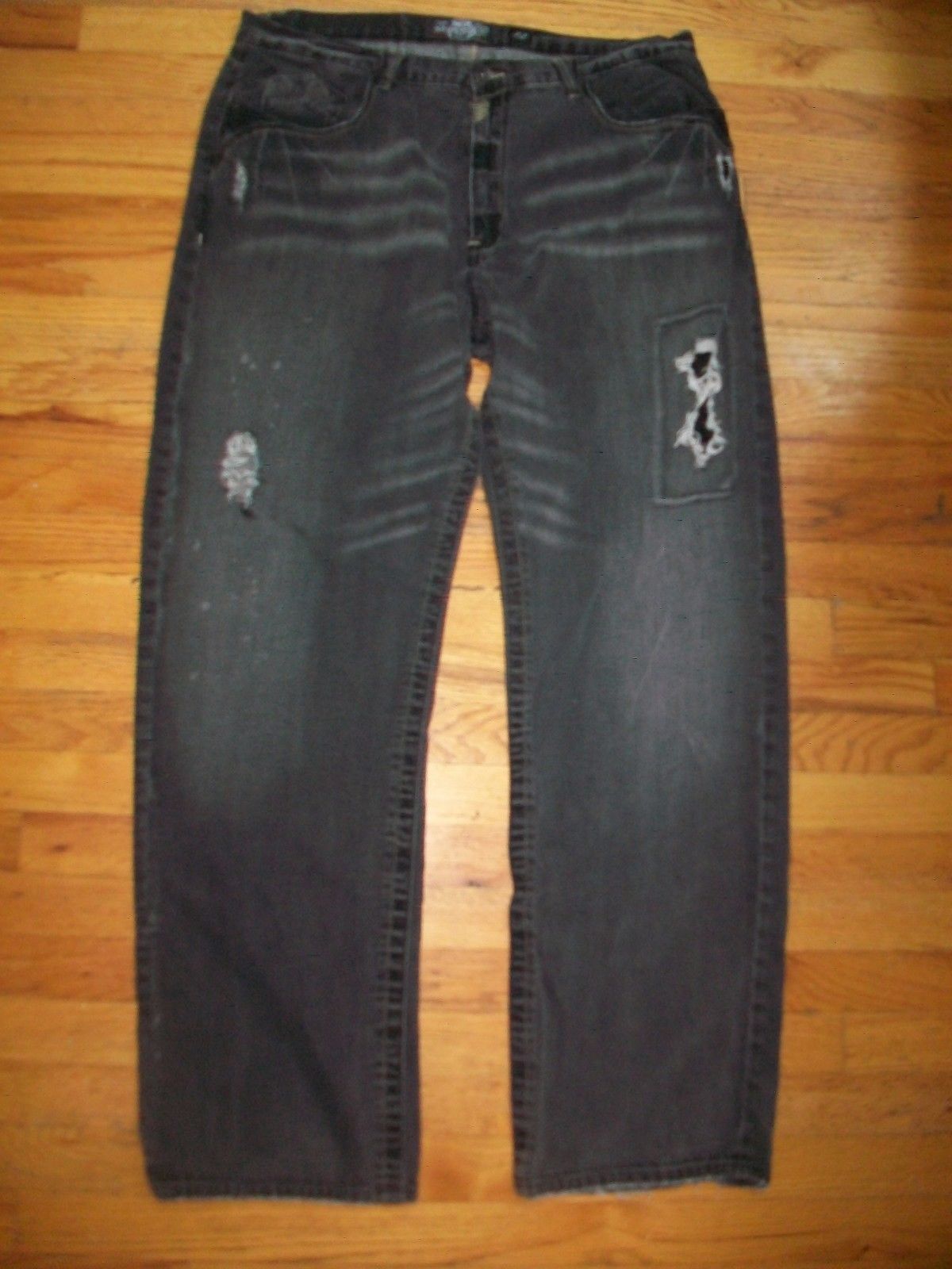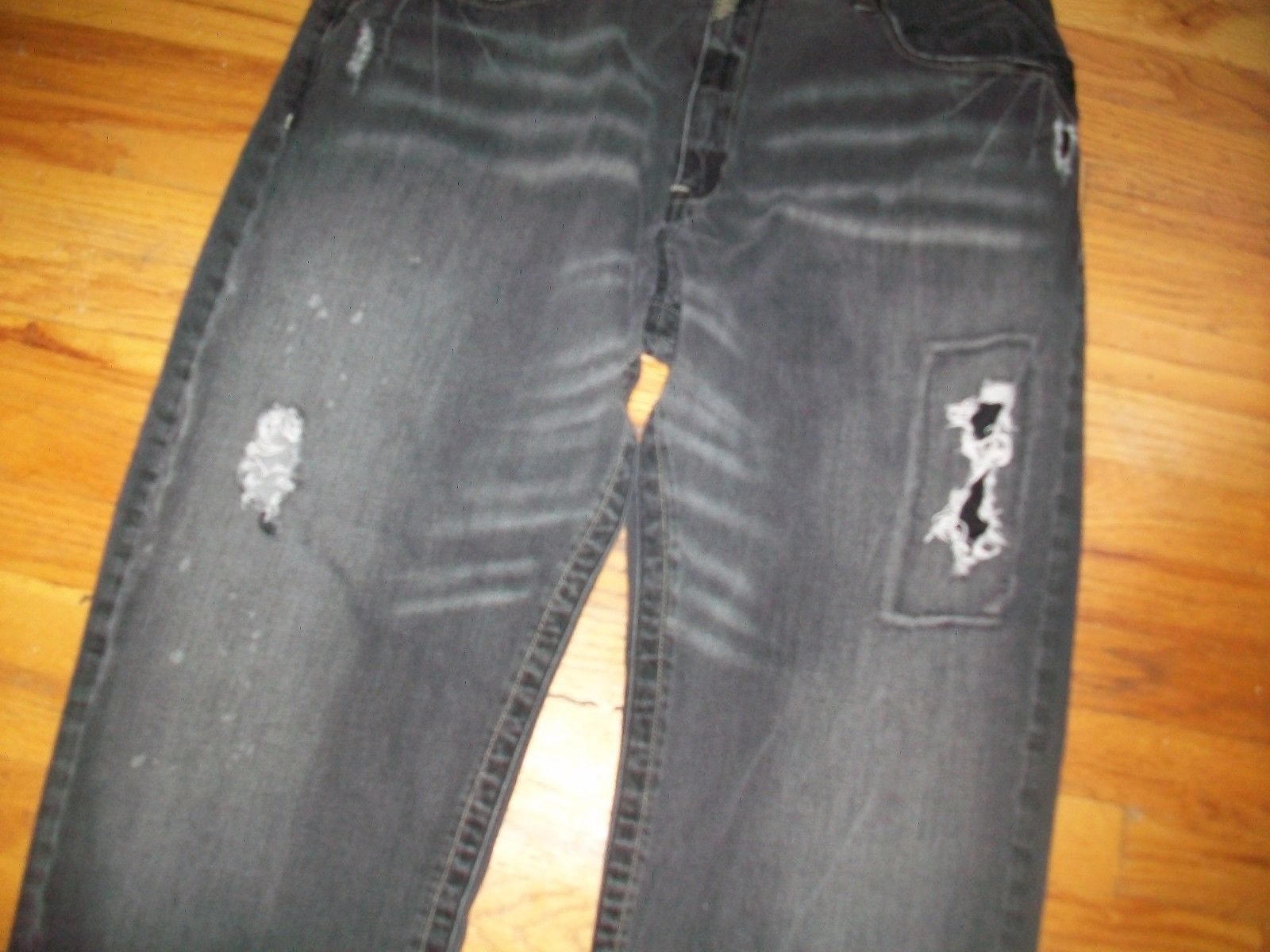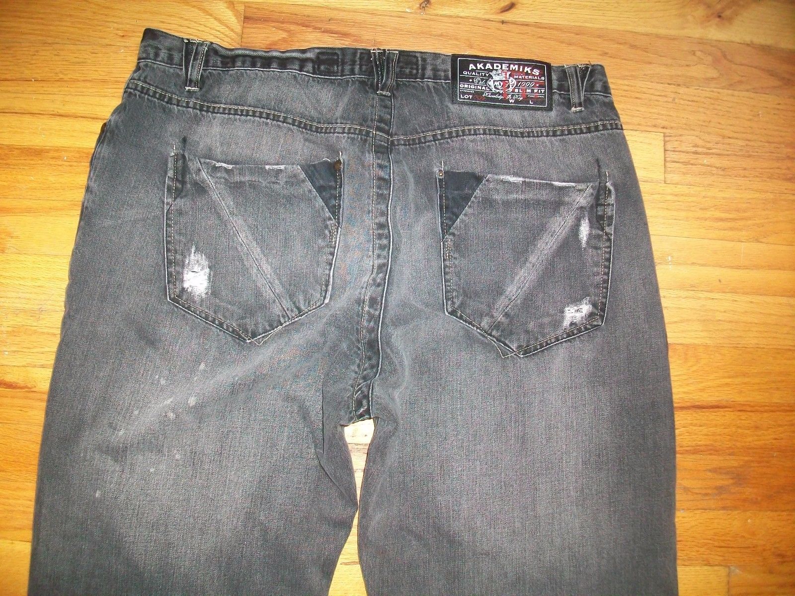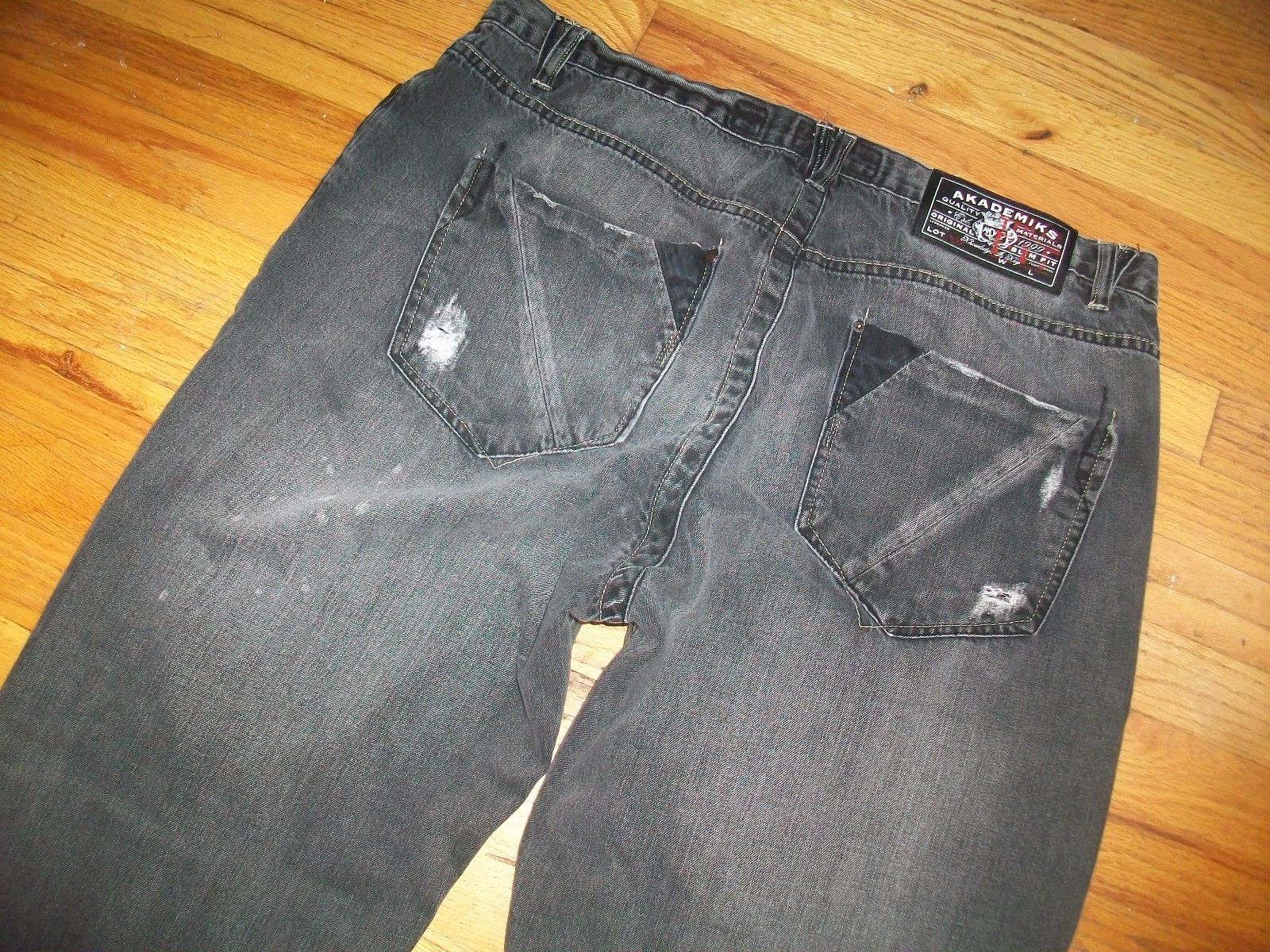 AKADEMIKS DESTROYED GRAY ORIGINAL SLIM FIT MEN'S JEANS SIZE 42 X 35