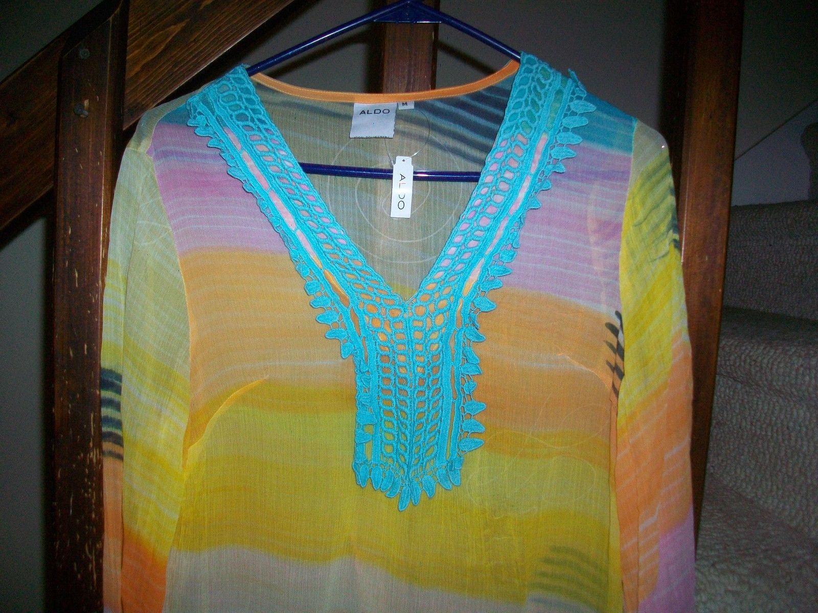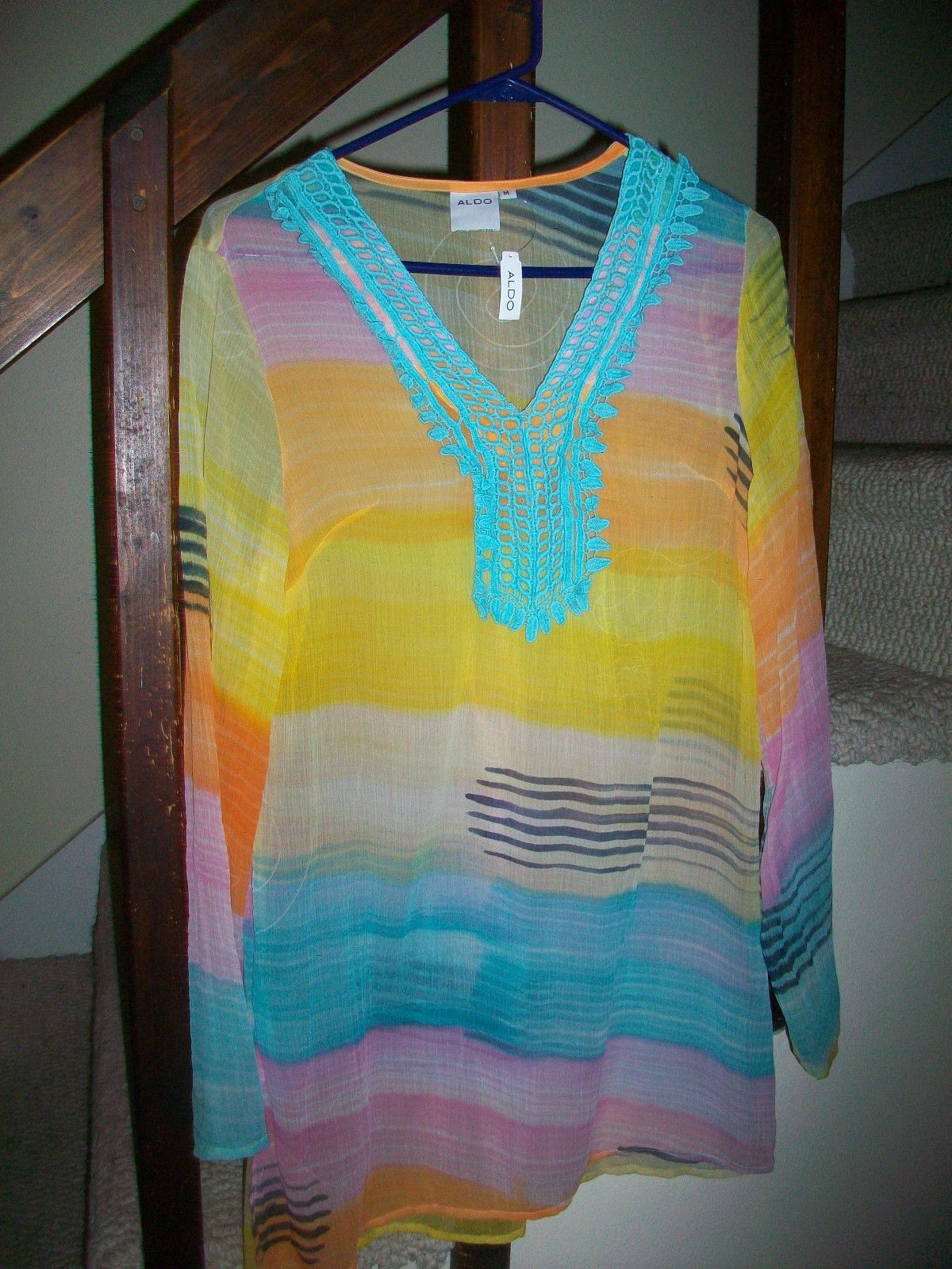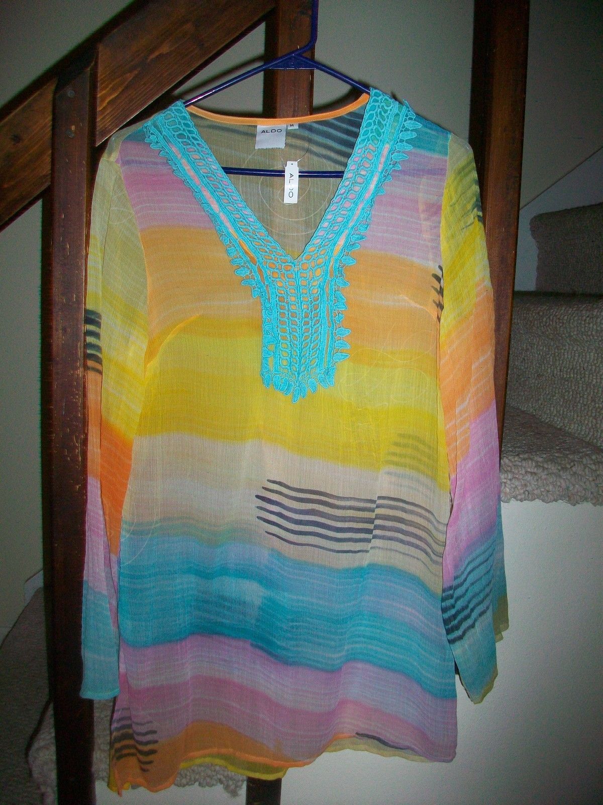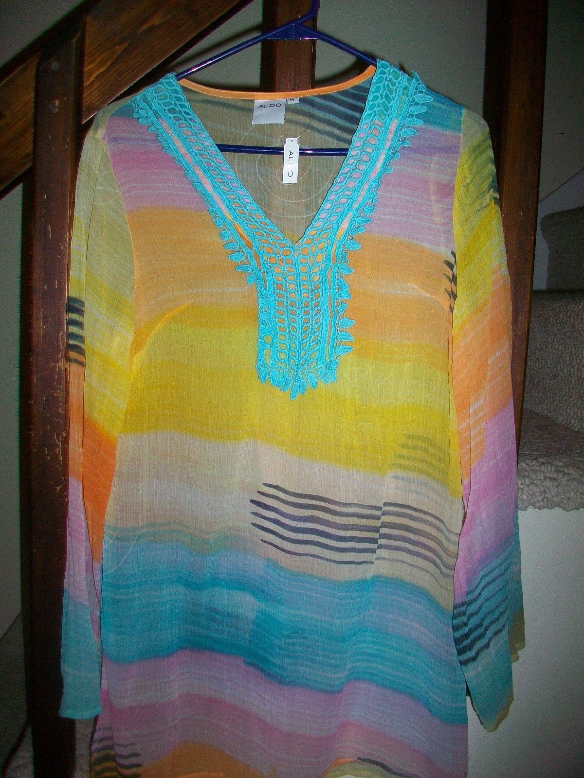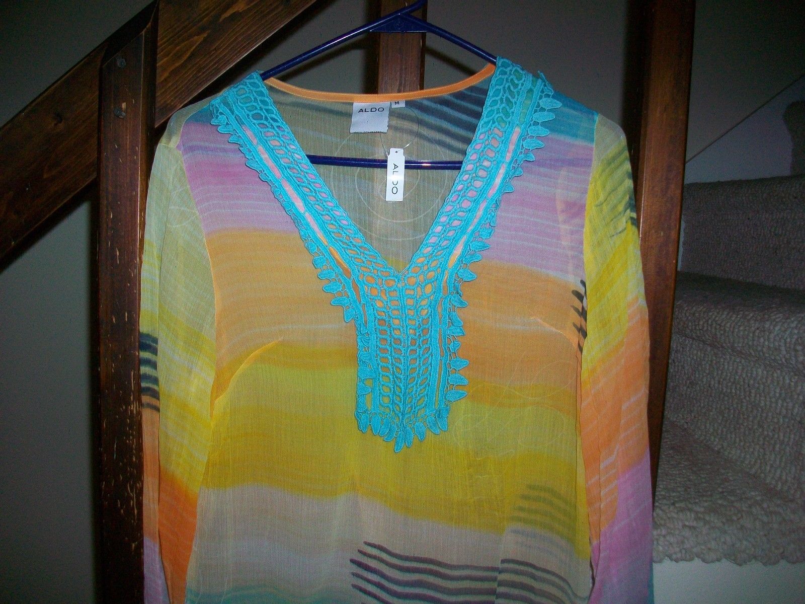 Aldo Sheer INDIA "GILLENTINE" LONG V-NECK TOP BLOUSE NWT'S SIZE MEDIUM NICE!