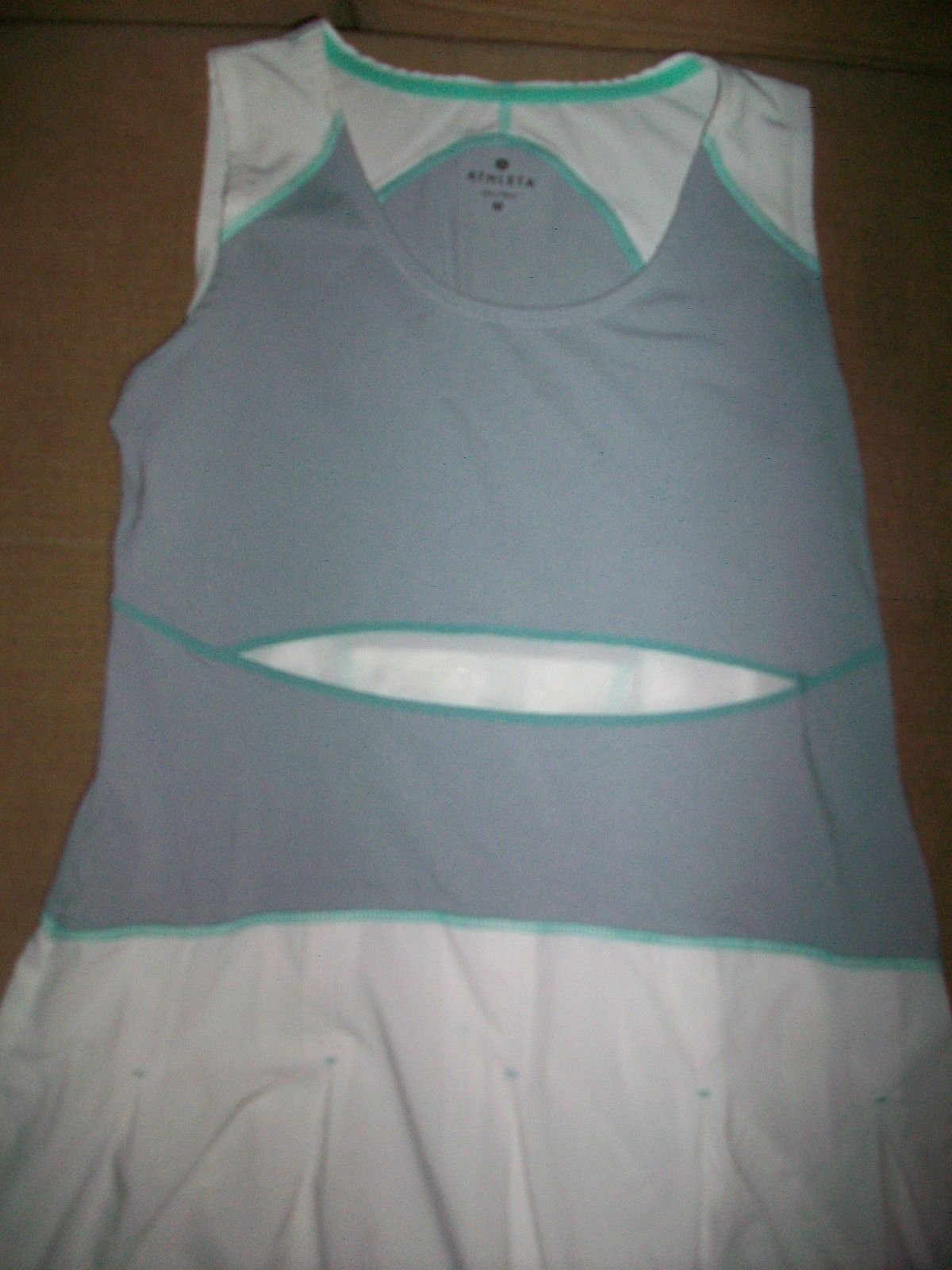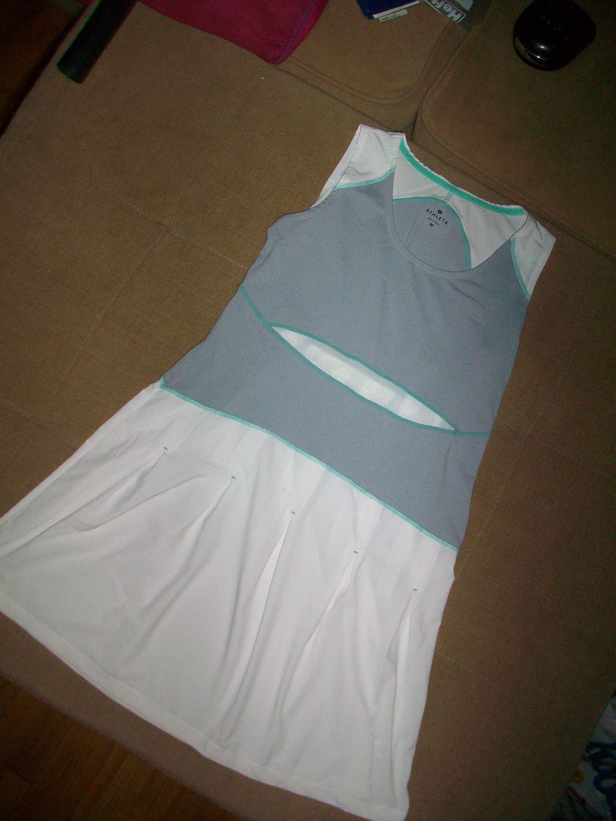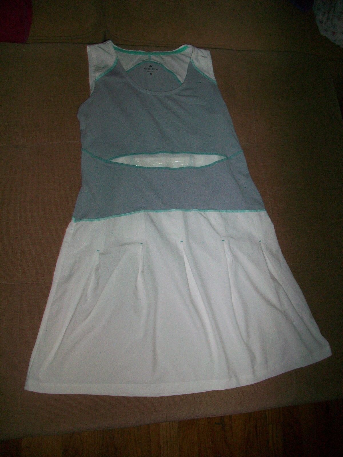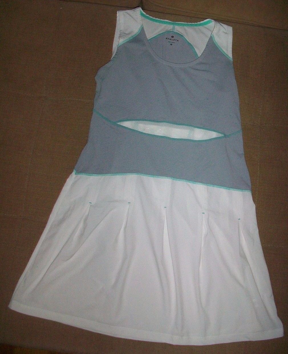 Aletha PLEATED 2 TONE GRAY & WHITE SPORTS Dress SIZE MEDIUM NICE! ZIPPERED POCKET ON BACK OF DRESS. ARMPIT TO ARMPIT MEASURES 17 INCHES LAYING FLAT BEFORE STRETCH. LENGTH MEASURES 33 INCHES.