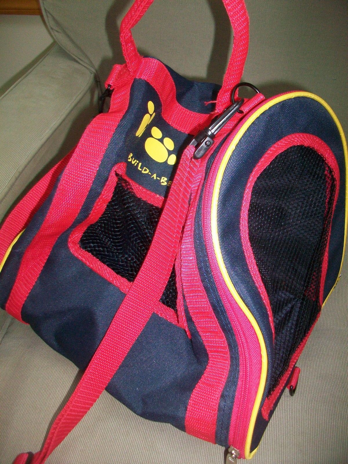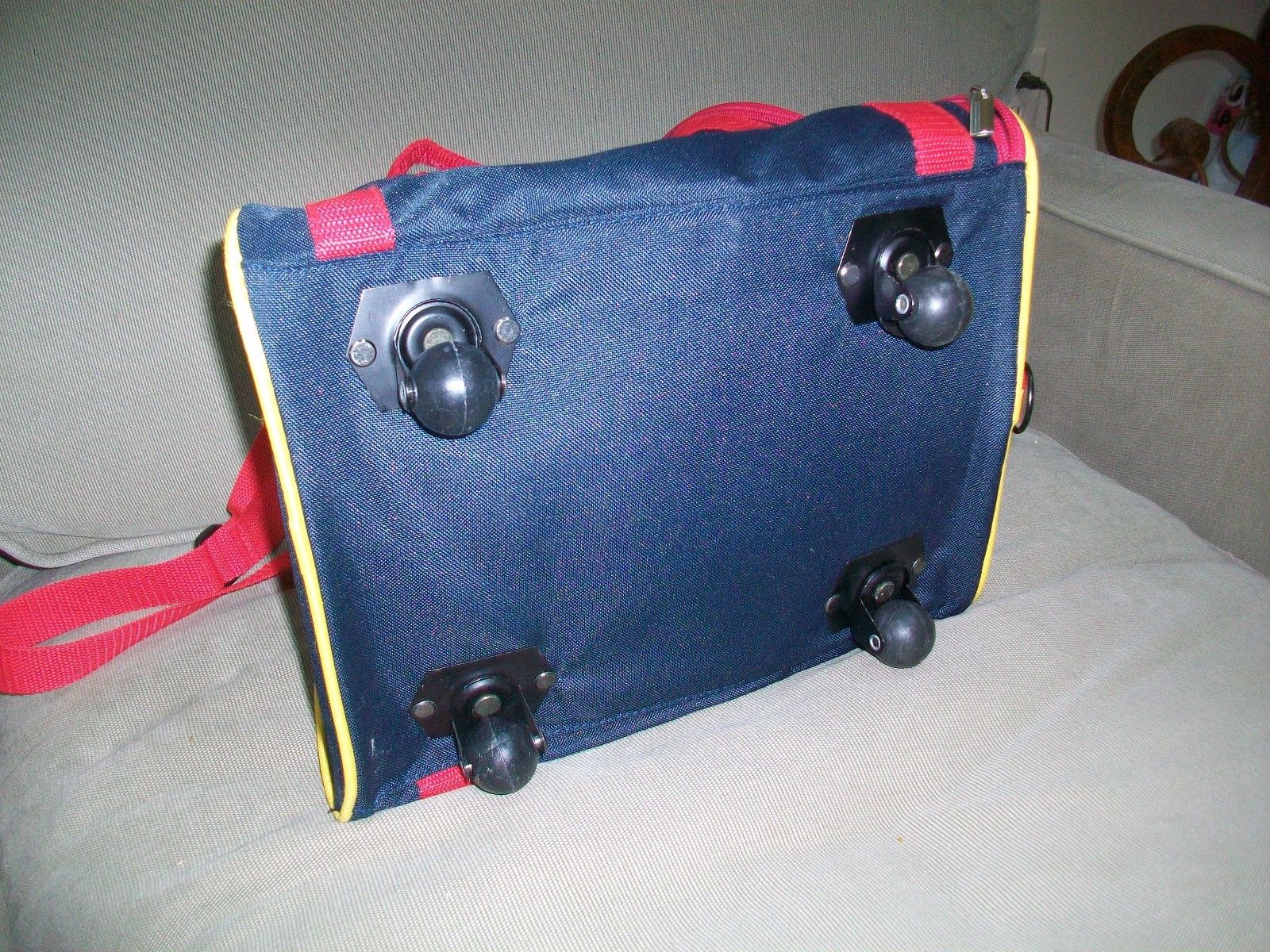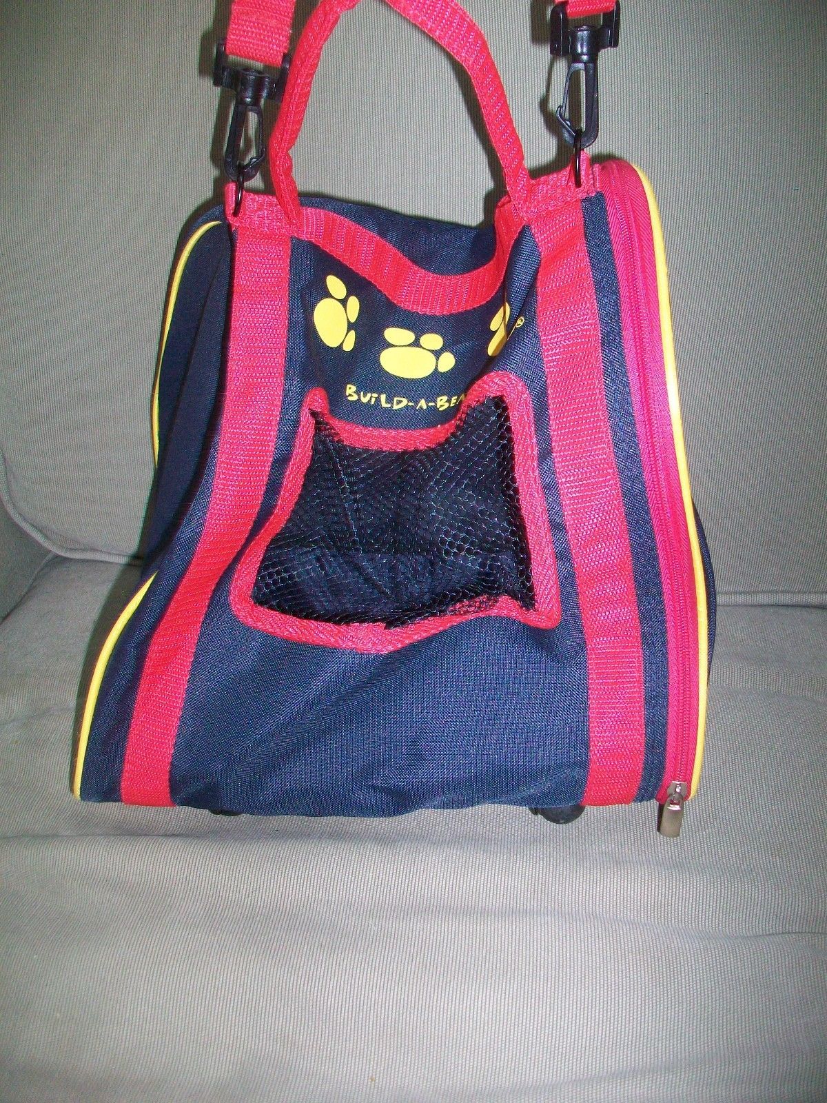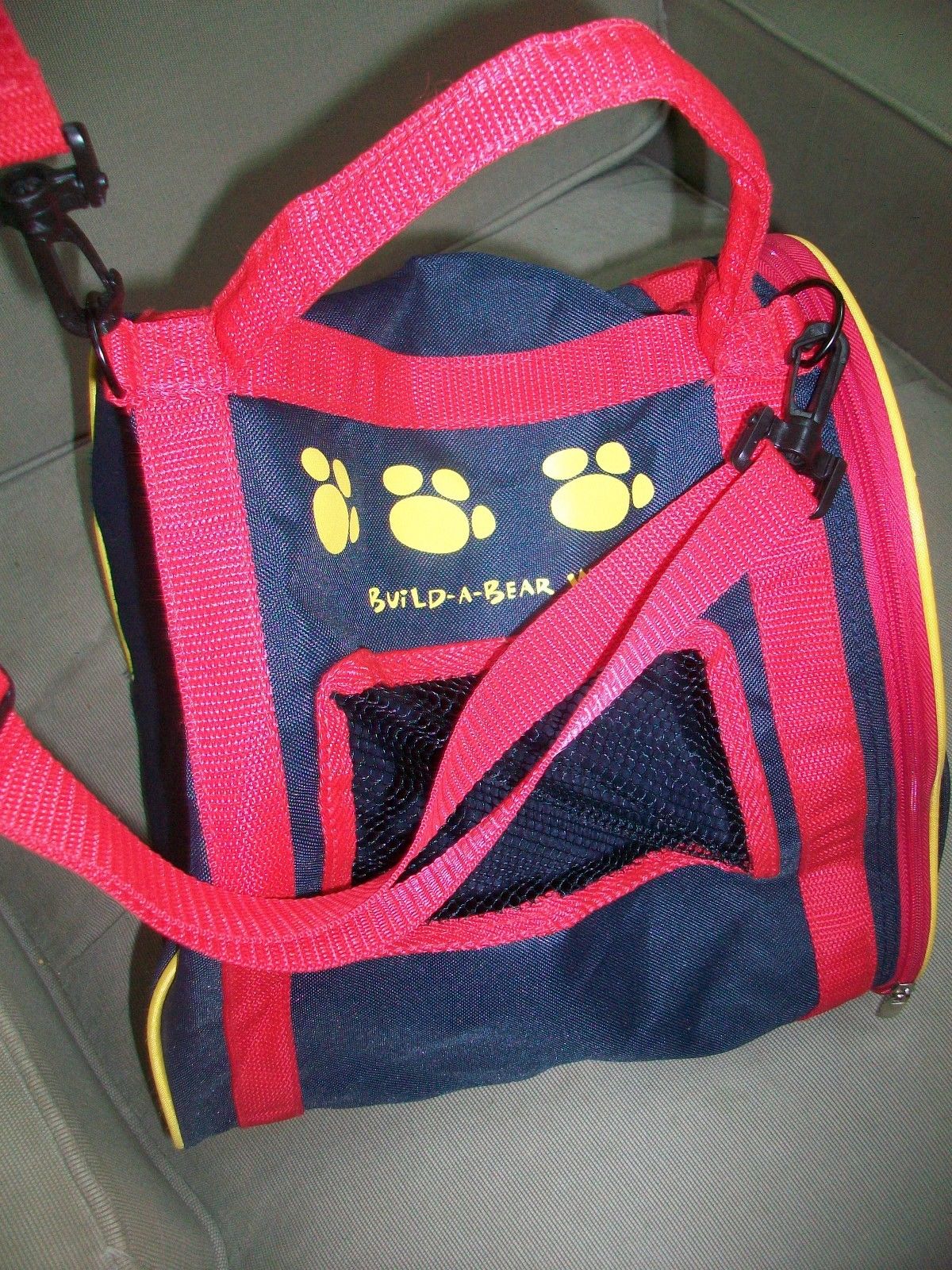 BUILD A BEAR BEAR CARRIER RED & BLUE WITH WHEELS & SHOULDER STRAP CUTE! 2009