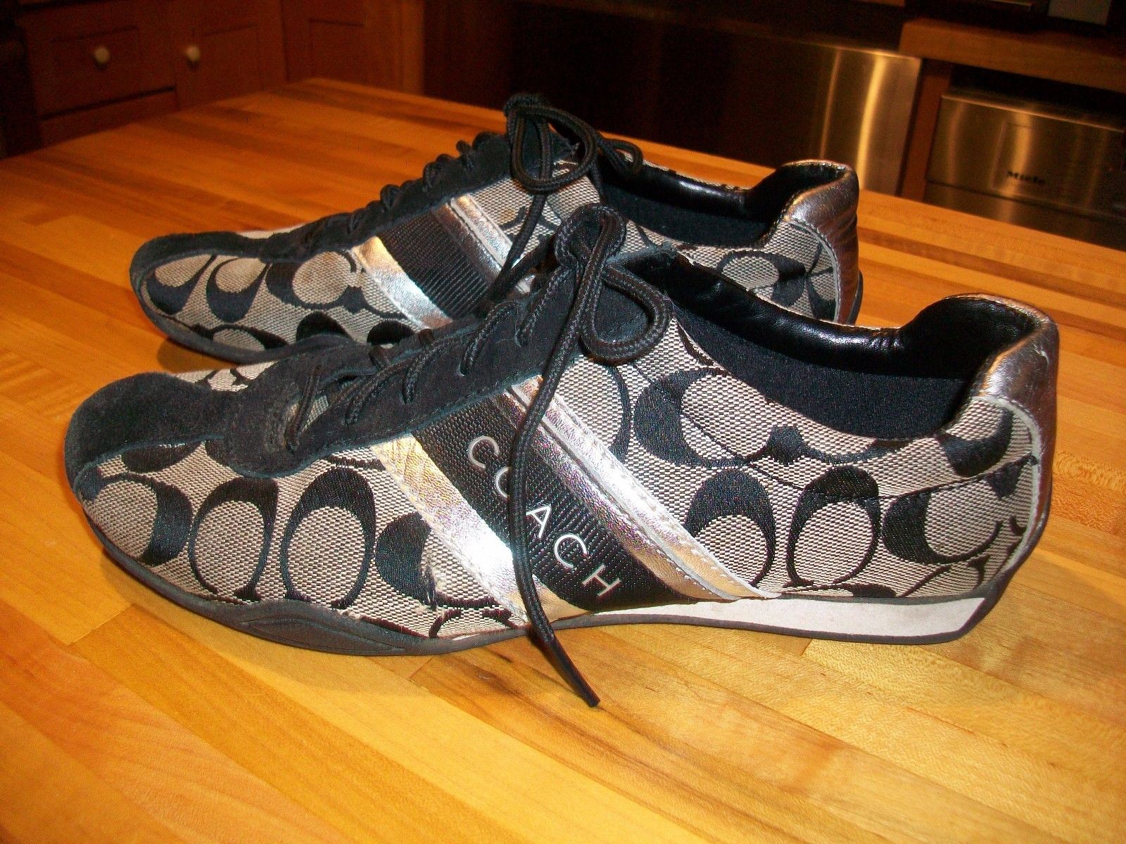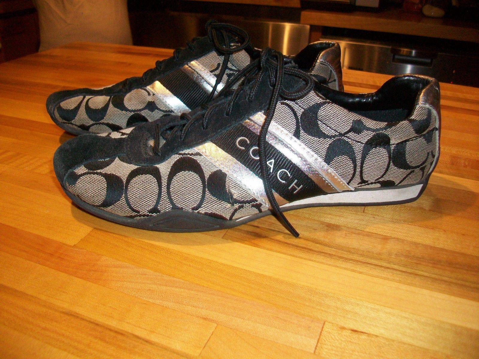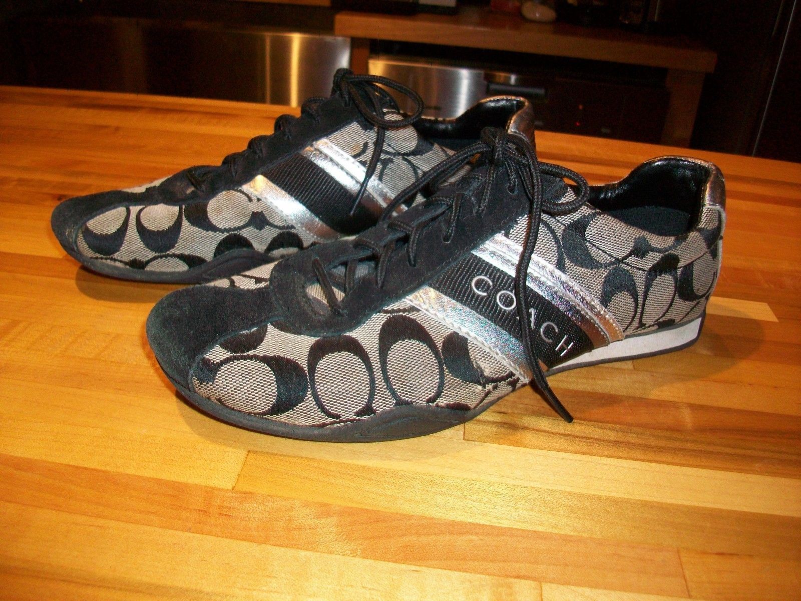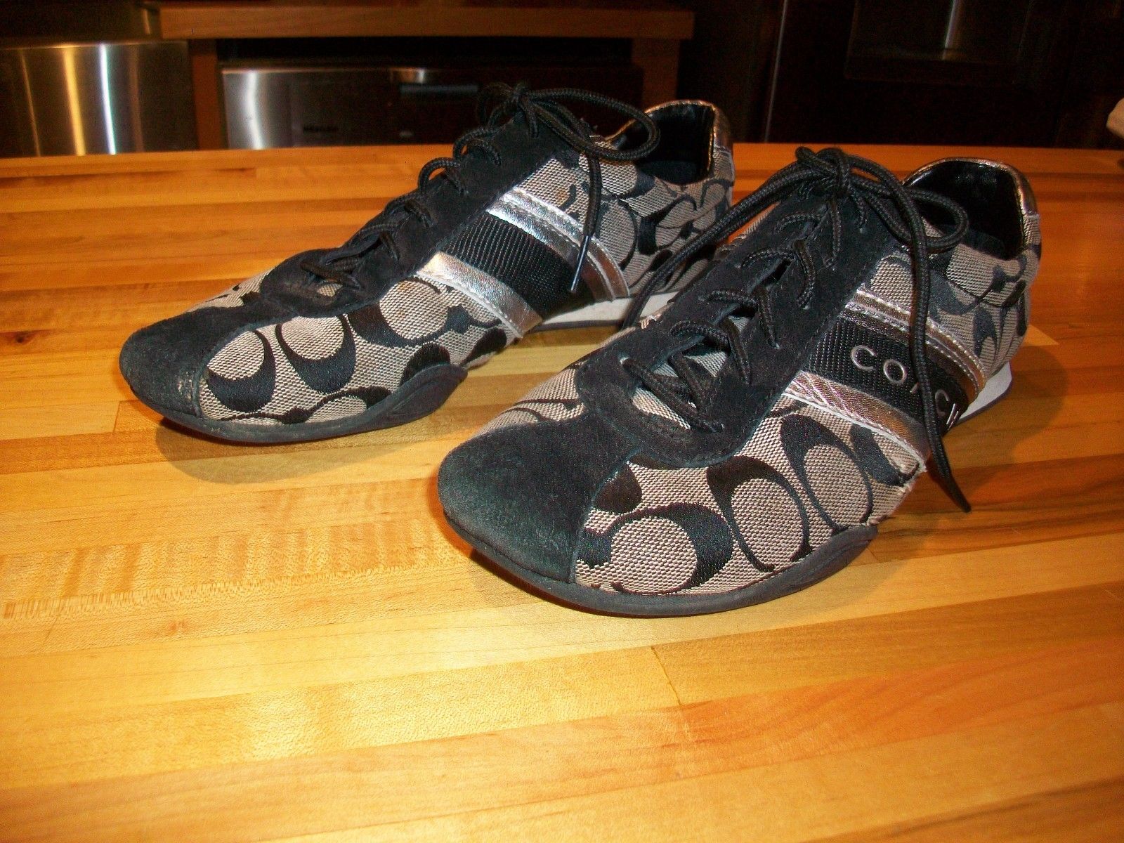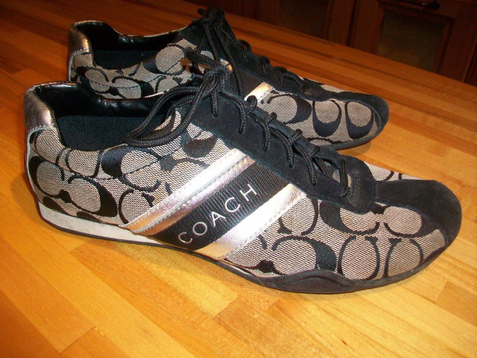 Coach Signature Jayme Sneaker Women size 8.5 m Black & SILVER. NICE SNEAKERS.. CHECK OUT PICS..