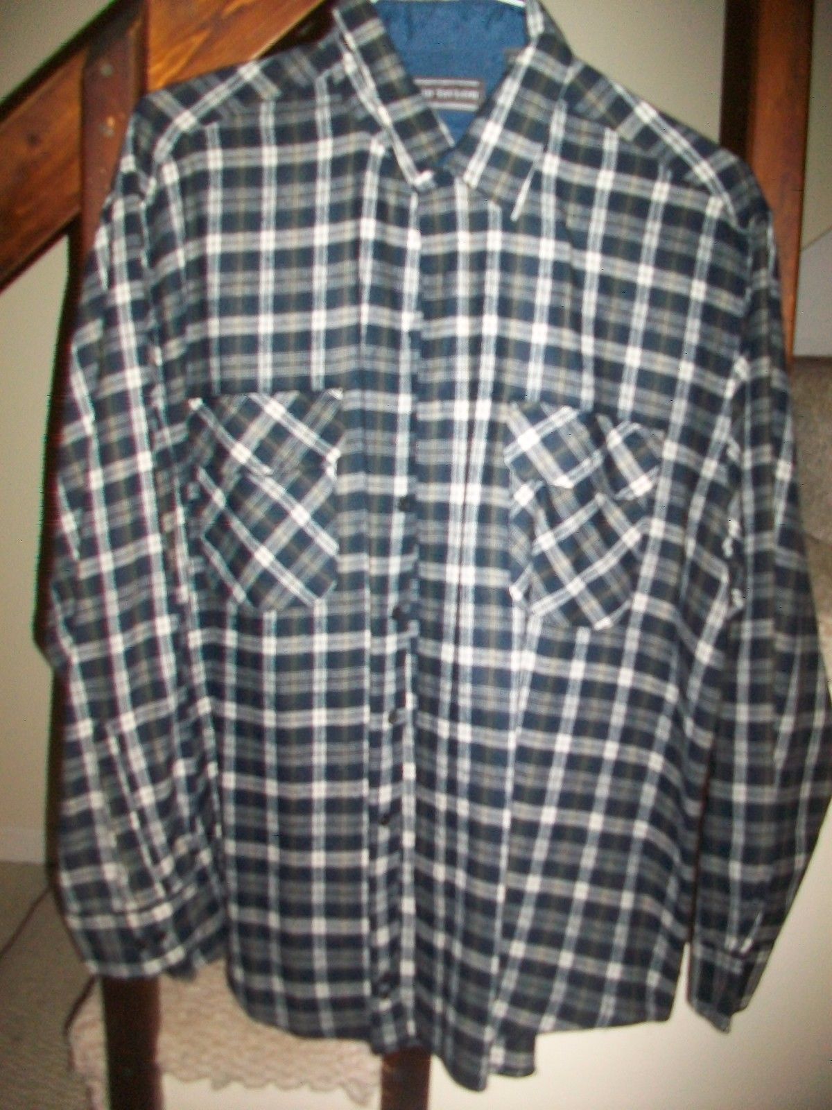 DAVID TAYLOR BUTTON FRONT COTTON SHIRT MEN'S XL DRY CLEANED! PLAID STRIPE