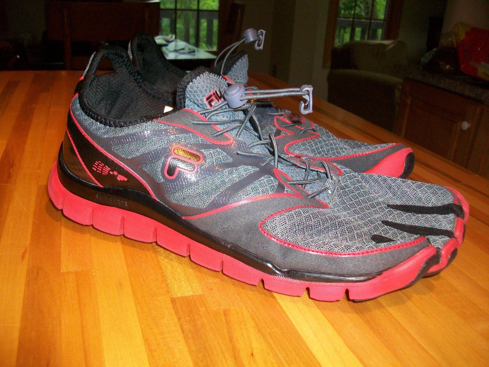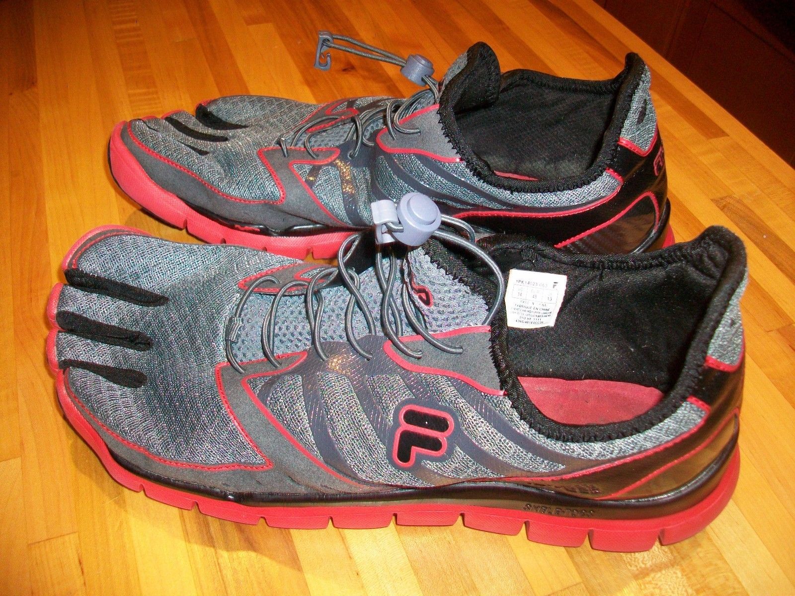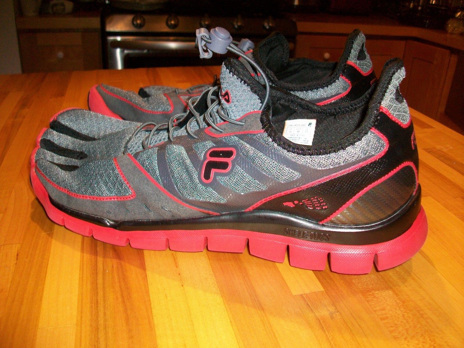 FILA Skeletoes Mens Gray RED Five Finger Water Swim Shoes Sz 14. COMFY SHOES!