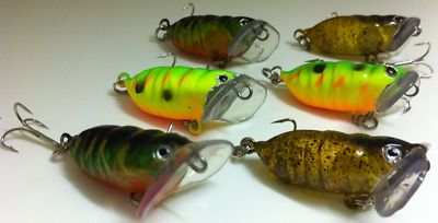 THESE LURES HAVE A INTERNAL RATTLE, A BALANCED BODY AND REALISTIC FINISH.