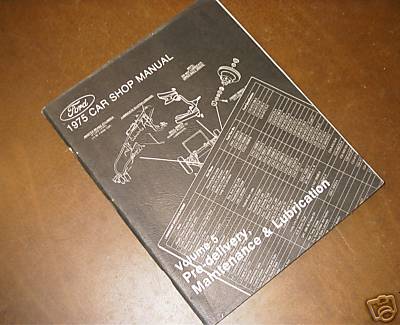 1975 Car Pre-delivery Maintenance and Lubrication Manual. About 50 pages. Manual published by Ford Motor Company and was previously owned by a Ford dealership. Front cover missing some pieces, but overall in good condition.