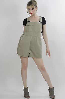 VTG 90s Grunge khaki twill coveralls romper shorts boho gypsy playsuit chic
