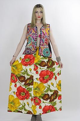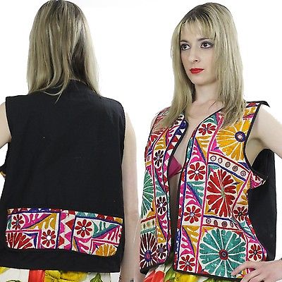Vtg 60s India Hippie boho embroidery floral mirror ethnic top vest jacket gypsy