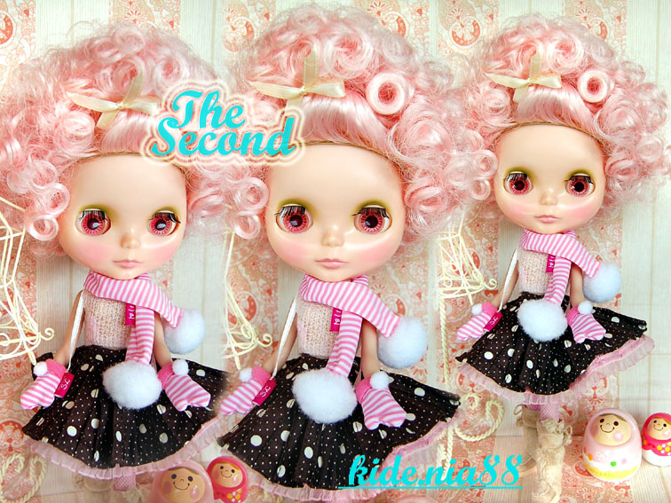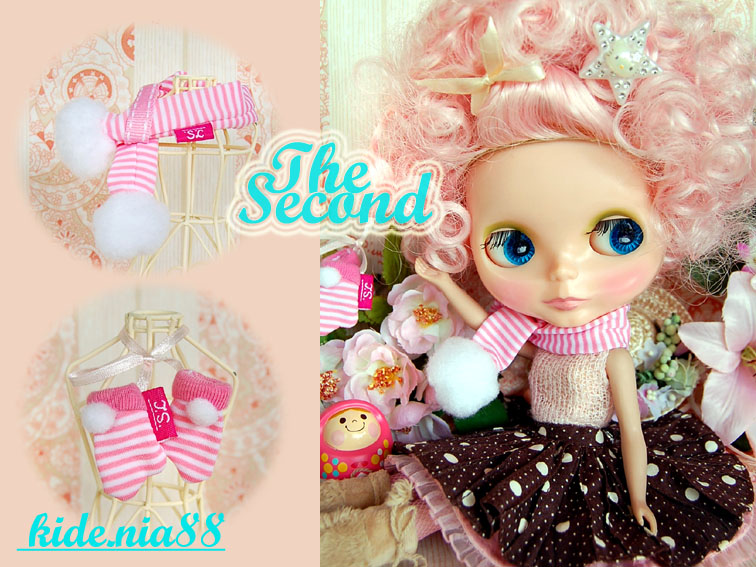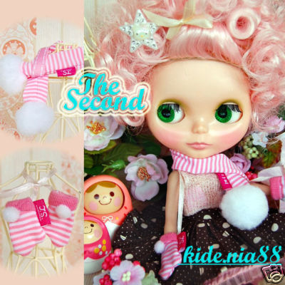 You are bidding on a handmade Blythe outfit * mitten & scarft of pink stripe * 2 pcs,perfect for your Takara/Kenner Blythe doll.