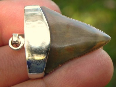 1 7/16 + " SILVER CAPPED GREAT WHITE Shark Tooth