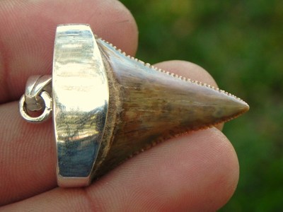 1 7/16 + " SILVER CAPPED GREAT WHITE Shark Tooth