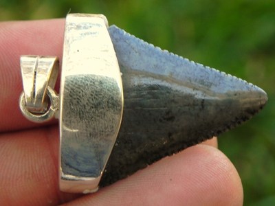 1 9/16 + " SILVER CAPPED GREAT WHITE Shark Tooth