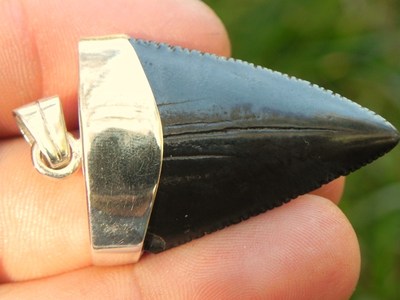 1 5/8 + " SILVER CAPPED GREAT WHITE Shark Tooth