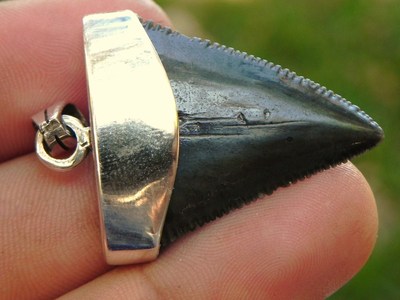 Silver Capped Great White Shark Tooth