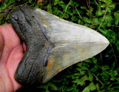 5c Megalodon Miocene fossil shark tooth ASTONISHING CONTRAST MEGALODON TOOTH !!!