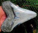 The megalodon shark lived in the miocene/ pliocene era approximately 12 million years ago. Megalodon grew up to 60 feet long and had a deadly arsenal of 147 razor sharp teeth. There have been teeth found that exceed 7" long ! The formula for figuring length of the shark is done by the primary tooth measurements . Standard Measurements are taken from the tip to the longest root side. For every eighth of an inch equals 1 foot in length. There fore a 7" tooth would be 56' long. The megalodon fed on whales squid,large fish and anything that moved. The power of its jaws was incredible. They could slash through vertebrae and rib bones with ease. They could even slice through their own teeth teeth!