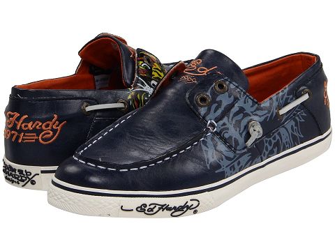 You'll look hip, slick, and cool when you step out in these wicked boat shoes! Easy slip-on wear. Faux-leather upper with classic Ed Hardy tattoo-inspired accents. Canvas lining. Lightly cushioned man-made footbed. Textured rubber sole. Weight: 9 oz Product measurements were taken using size 9. Please note that measurements may vary by size.