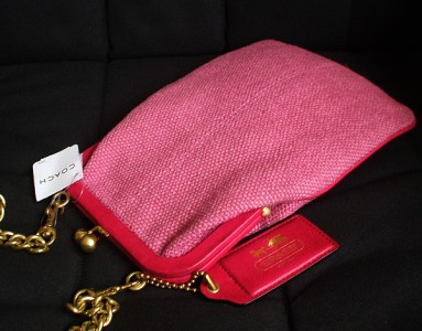Coach Beautiful Luxurious PINK Woven Fabric Leather Trim Framed
