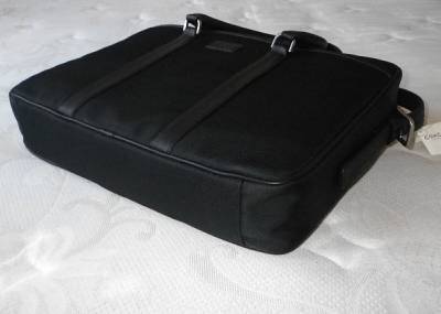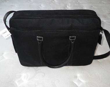 Up for your consideration Beautiful Coach Twill Laptop Portfolio Briefcase, Style no. 5102! Beautifully crafted with finest twill fabric with genuine black leather trim accent! Really AWESOME! Beautifully designed to fit a 15" laptop, Absolutely FABULOUS! Can also be used as a messenger bag. This is really a nice laptop portfolio briefcase, its thin and not bulky, and its BLACK so it easily matches with anything you wear. This is SOLD OUT & Discontinued. Rare & Hard to Find online, in fact ONLY ONE on Ebay right now in BRAND NEW condition! This is great accessory for teens too! Really AWESOME with dual zip closure, so you can lock and secure your essential! It Measures approximately 15 1/2 L x 12 H x 2 1/2 W. All my bags are as ALWAYS 100% AUTHENTIC! This is another coach laptop portfolio briefcase you will surely love to have, that's for sure! Please see photos for other details.