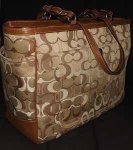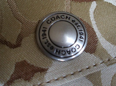 Up for your consideration Hard to Find Coach's line of Multifunction Baby Diaper Bag, This is the Original OPTIC Signature Diaper Bag and not the Coach Factory Copy, This is style no. 6429! This is the first Edition Optic Diaper Bag, Beautifully crafted with water and stain resistant optic signature C jacquard fabric in wonderful interlaced shades of Khaki/Brown C's and compared from the factory patent trim, this is trimmed with high end genuine leather that has distinctive vintage distressed look with awesome color saturation complete with coach embossed hang tag and coach embossed heart chain, Absolutely FABULOUS! This is SOLD OUT everywhere, And VERY HARD to find online in this awesome condition, in fact you hardly see one like it on Ebay in this BRAND NEW and never been used condition. This is fun optic C's with multiple pockets and compartments for your baby's needs. This is another coach baby bag Mommies will love to have, that's for sure!