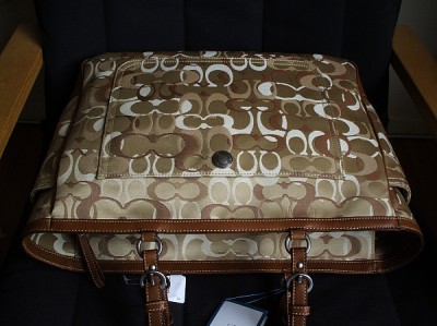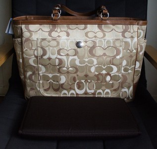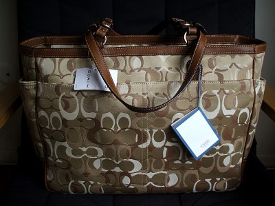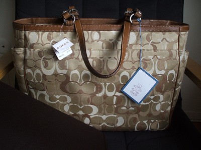 This is BRAND NEW WITHOUT TAGS and in pristine mint condition. I just currently lost the tags from moving but this is never been used so I am sure you wont be disappointed. This is a beautiful coach diaper bag and with its gorgeous KHAKI color it will definitely match anything you wear. This is perfect for ladies who are pregnant or planning to have babies! Or women who simply needs a multifunction bag. This is excellent for students too! Can also be use as a laptop bag! It comes with a changing diaper pad which was never used. Coach dust bag is included.