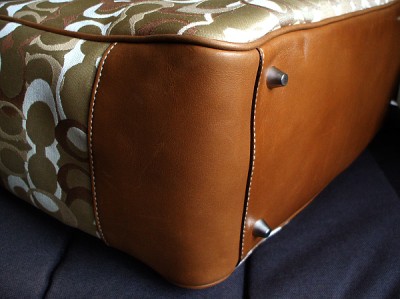 - Signature Optic Jacquard Fabric w/ Vintage Distressed Leather Trim