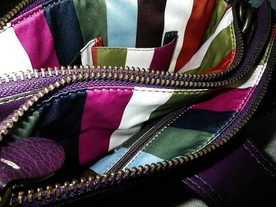 Interior is fully line w/ silky sateen legacy stripe fabric