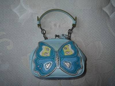 Up for your consideration Gorgeous & Stunning Small Butterly Applique Purse, Style no. 3564. This is LIMITED EDITION and only made in small quantities. Gorgeously crafted with nice attractive BLUE high end genuine leather accented with finest split suede leather, absolutely STUNNING in large BLUE Butterfly applique accented with cute details! WOW! Really Pretty & One of a Kind! Really UNIQUE & AWESOME! This is SOLD OUT everywhere, Extremely RARE and VERY HARD to find online in this fabulous condition, in fact ONLY ONE on Ebay right now! This is a SMALL size bag that you can only carry by hands, handle is long enough to use it like a wristlet. This is a True Coach Collector Piece that you will surely love to have, that's for sure! Please see photos for other details. Valued almost $450 with Tax included.