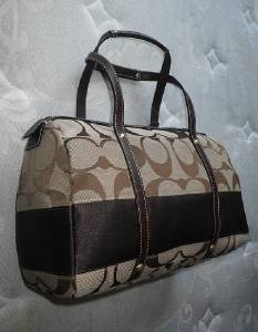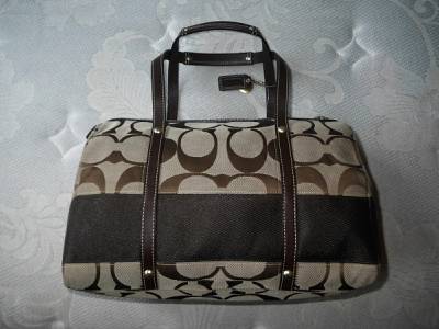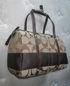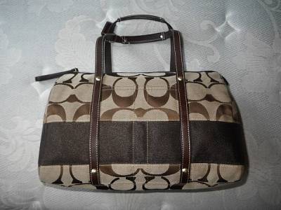 Up for your consideration is another Rare and Hard to Find Coach's Signature Stripe Collection, The Khaki Signature Stripe Zip Satchel, Style no. 11102! Beautifully crafted with water and stain resistant khaki signature C's trimmed with Gorgeous Mahogany Brown Leather accent with famous stripe accent complete with coach embossed leather hangtag and button medallion! Absolutely FABULOUS! This is SOLD OUT everywhere, And extremely HARD TO FIND online in this BRAND NEW condition. In fact ONLY ONE on Ebay now! This is Sporty and Trendy, Perfect for daily use! This is another coach bag you will surely love to have, that's for sure!
