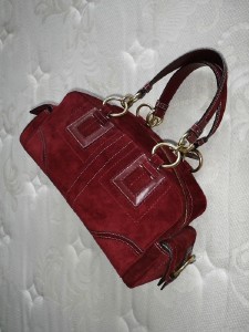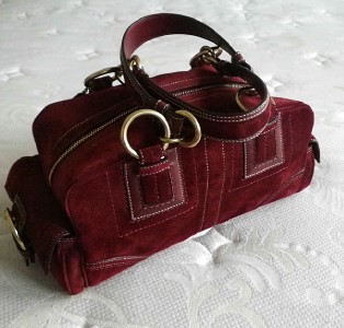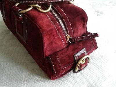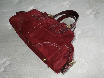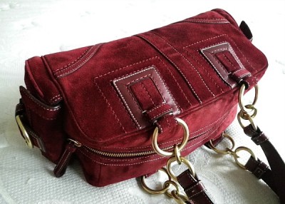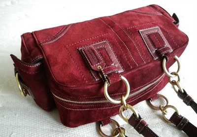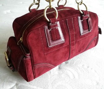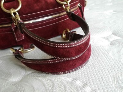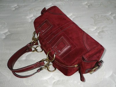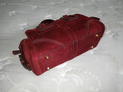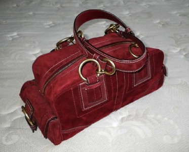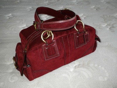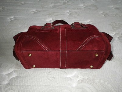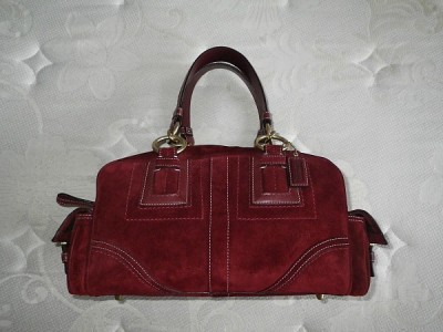 Up for your consideration Gorgeous & Luxurious Coach's Soho Suede Satchel, Style no. 10061. Gorgeously crafted with FINEST Crisp Red BURGUNDY Wine Suede Leather with nice contrasting genuine leather trim accent complete with coach embossed suede leather hangtag! WOW! Really Pretty with Nice Buckle Side Pockets with color combination & contrasting stitches that sure to TURN HEADS! This is SOLD OUT!, Extremely Rare and very hard to find in this BRAND NEW condition, In fact you hardly see one like it on ebay right now in this CHOCO BROWN Leather in BRAND NEW condition! I am sure this is another coach bag you will surely love to have, that's for sure!