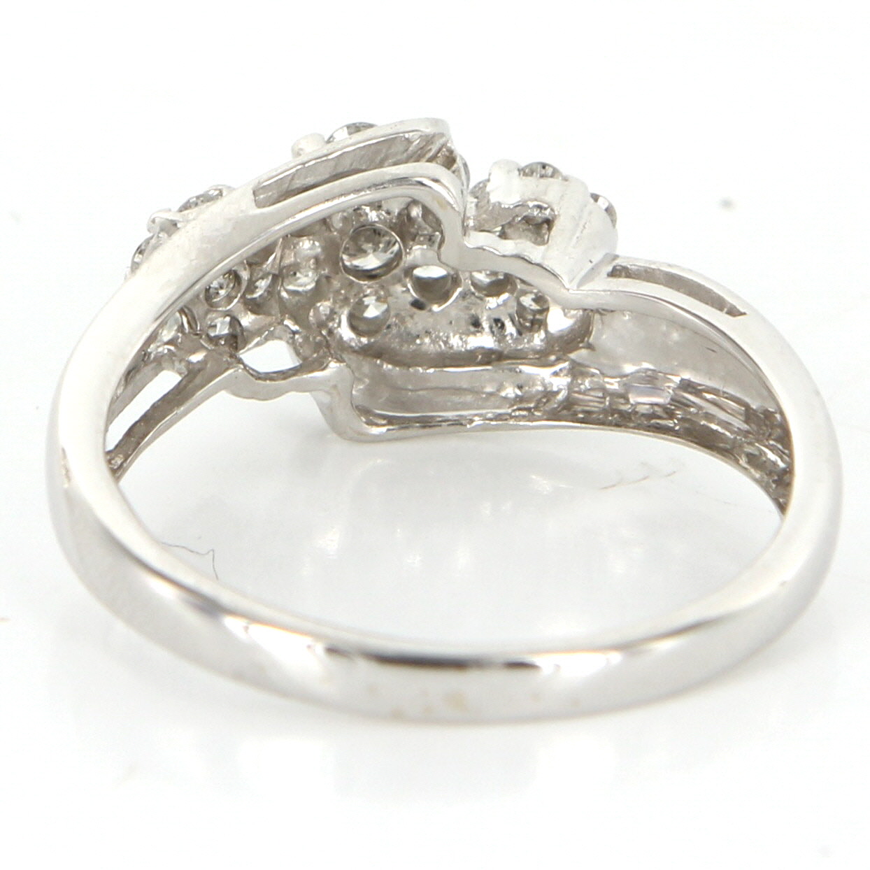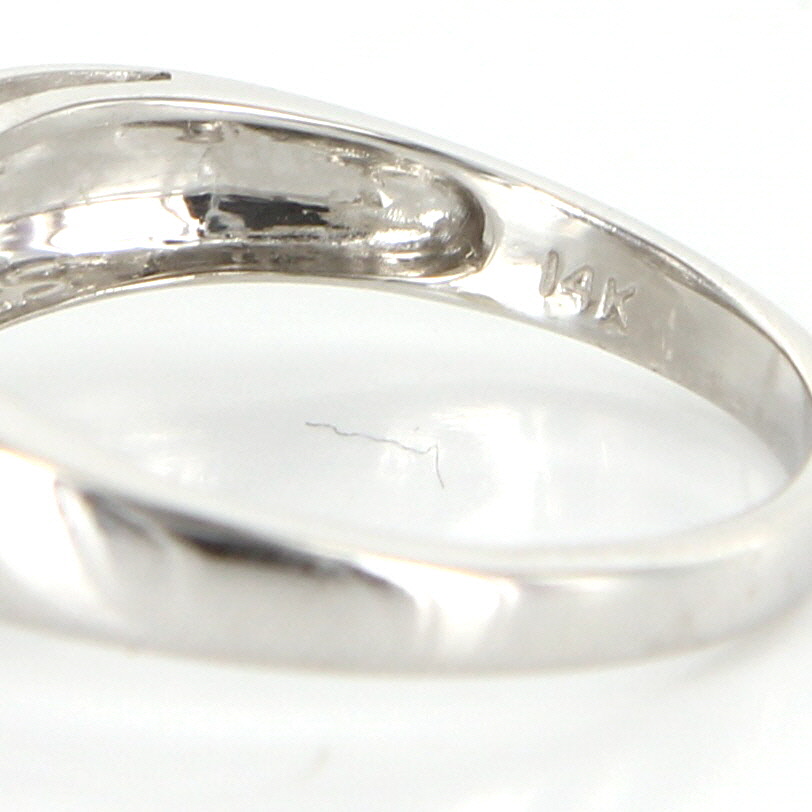 Particulars: Weight: 2.6 grams Stones: 44 approx. round brilliant cut diamonds totaling .44 carat (estimated G in color and VS2-SI1 in clarity). Size & Measurements: The ring is a size 6 3/4 (sizable). The band measures 8mm in width, rising 6mm from the finger. Metal & Hallmark: Solid 14 karat white gold. The ring is hallmarked "14k". Additional Information: Your item will be securely packaged and presented in a lovely gift box. Should you have any questions about this item please feel free to email. Lot G1899