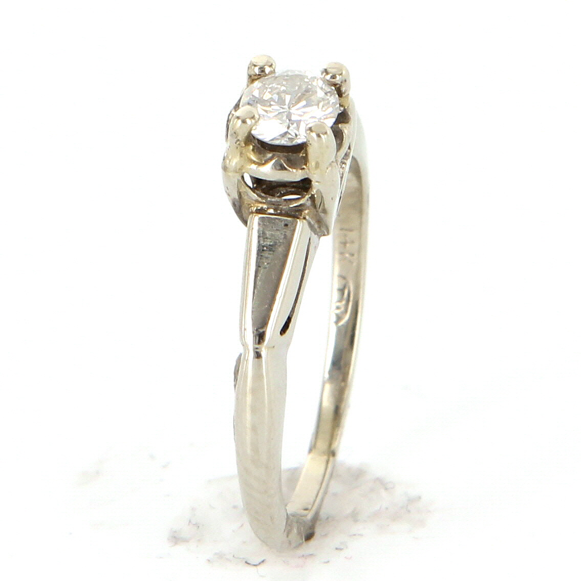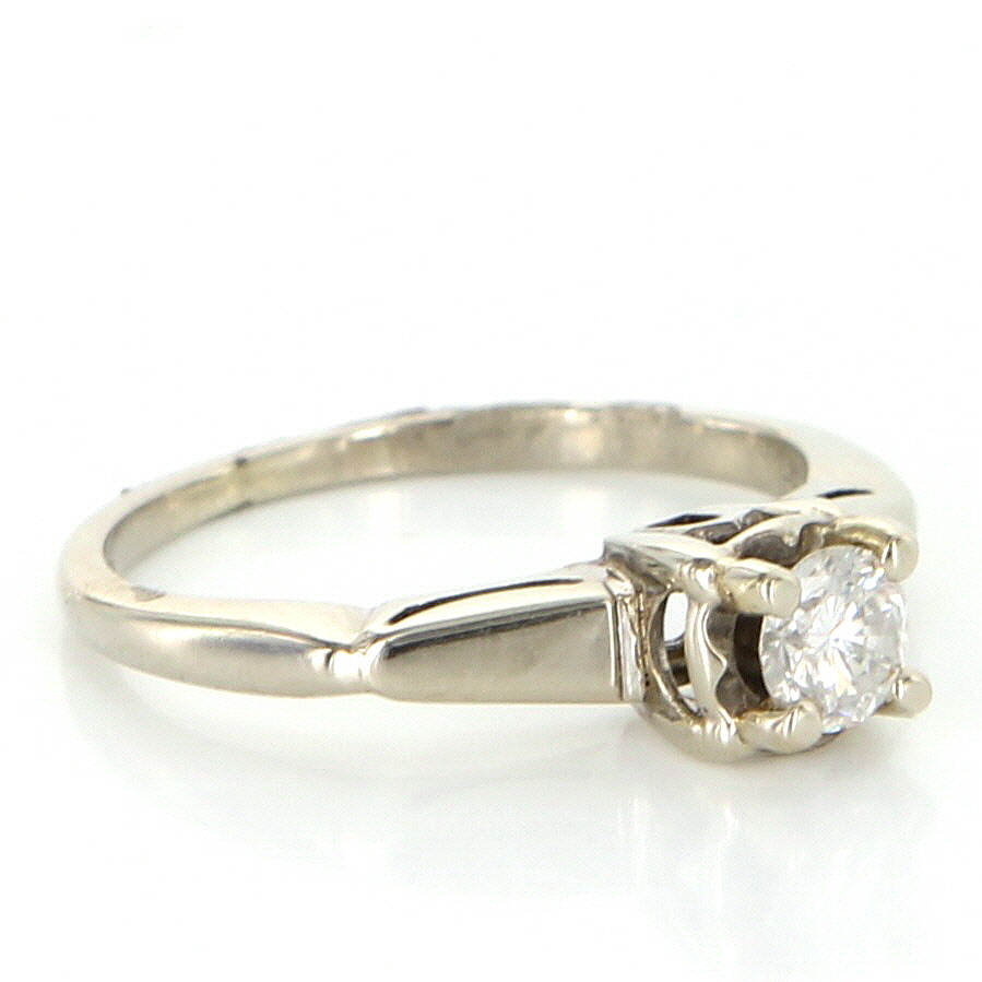 Offered for sale is a truly superb vintage engagement or right hand ring (circa 1950s to 1960s), crafted beautifully in 14 karat white gold.