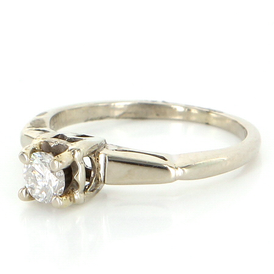 Stones: One approx. .28 carat estimated round brilliant cut diamond (estimated at I-J color and SI2 clarity).