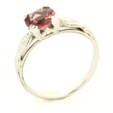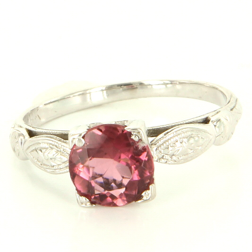*A beautiful pink tourmaline totaling 1 carat adorn the elegant mount.