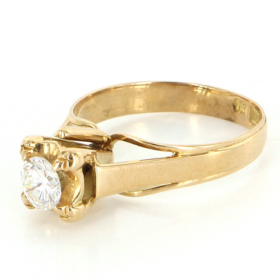 An estimated .55 carat round brilliant cut diamond is set into mount.