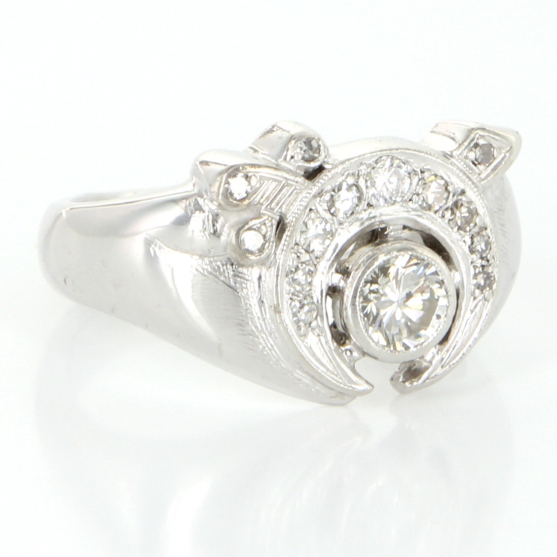 Vintage 14 Karat White Gold Diamond Mens Masonic Shriners Fraternal Ring Estate