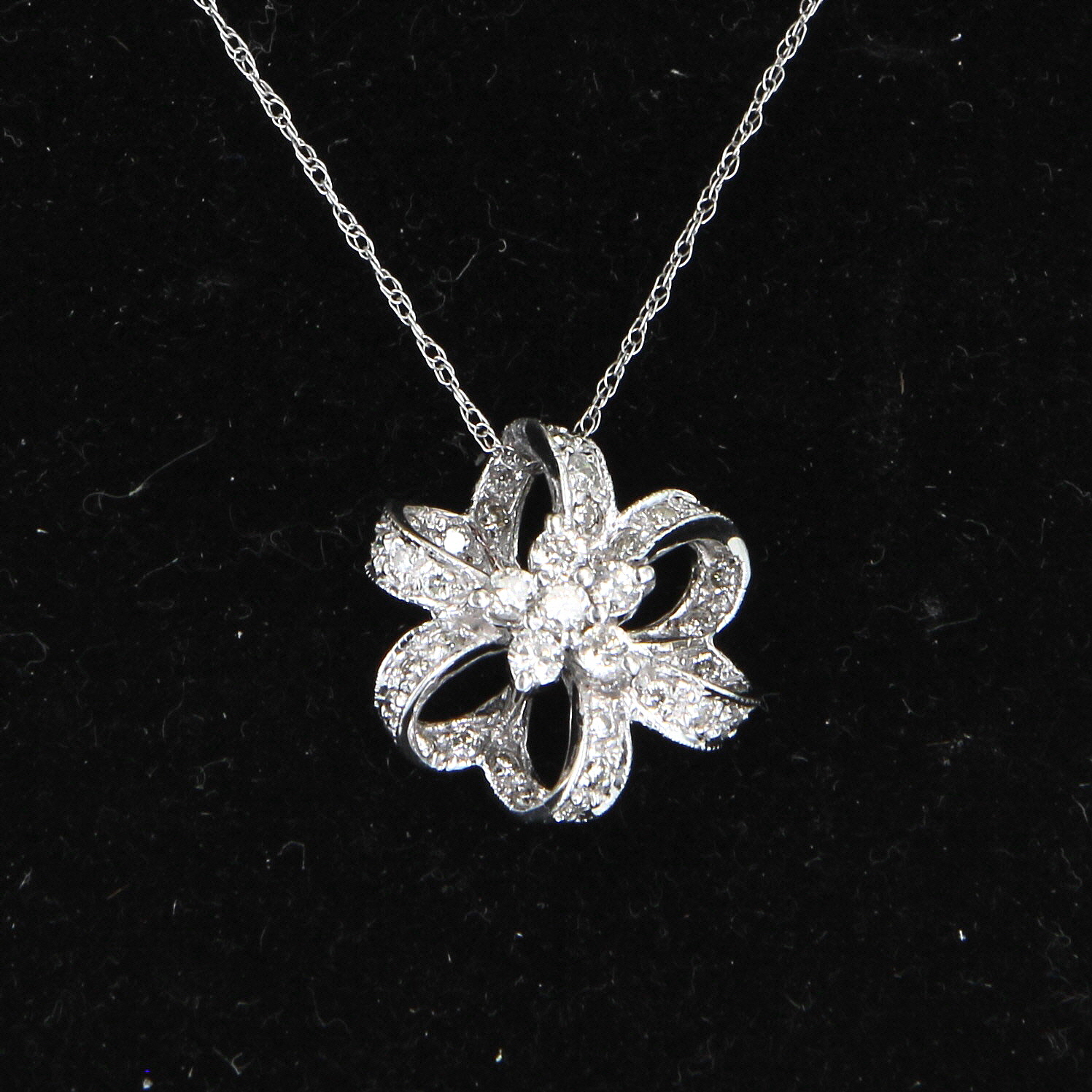Metal & Hallmark: Solid 18 karat white gold. The pendant is hallmarked "18k". The chain is hallmarked "10k".